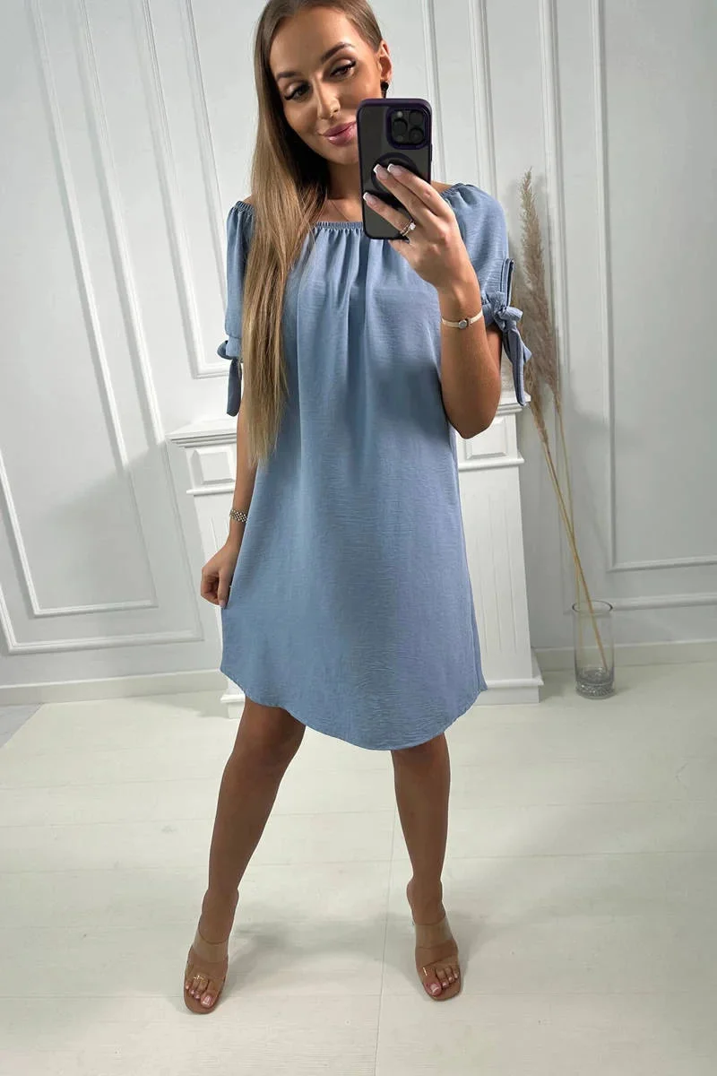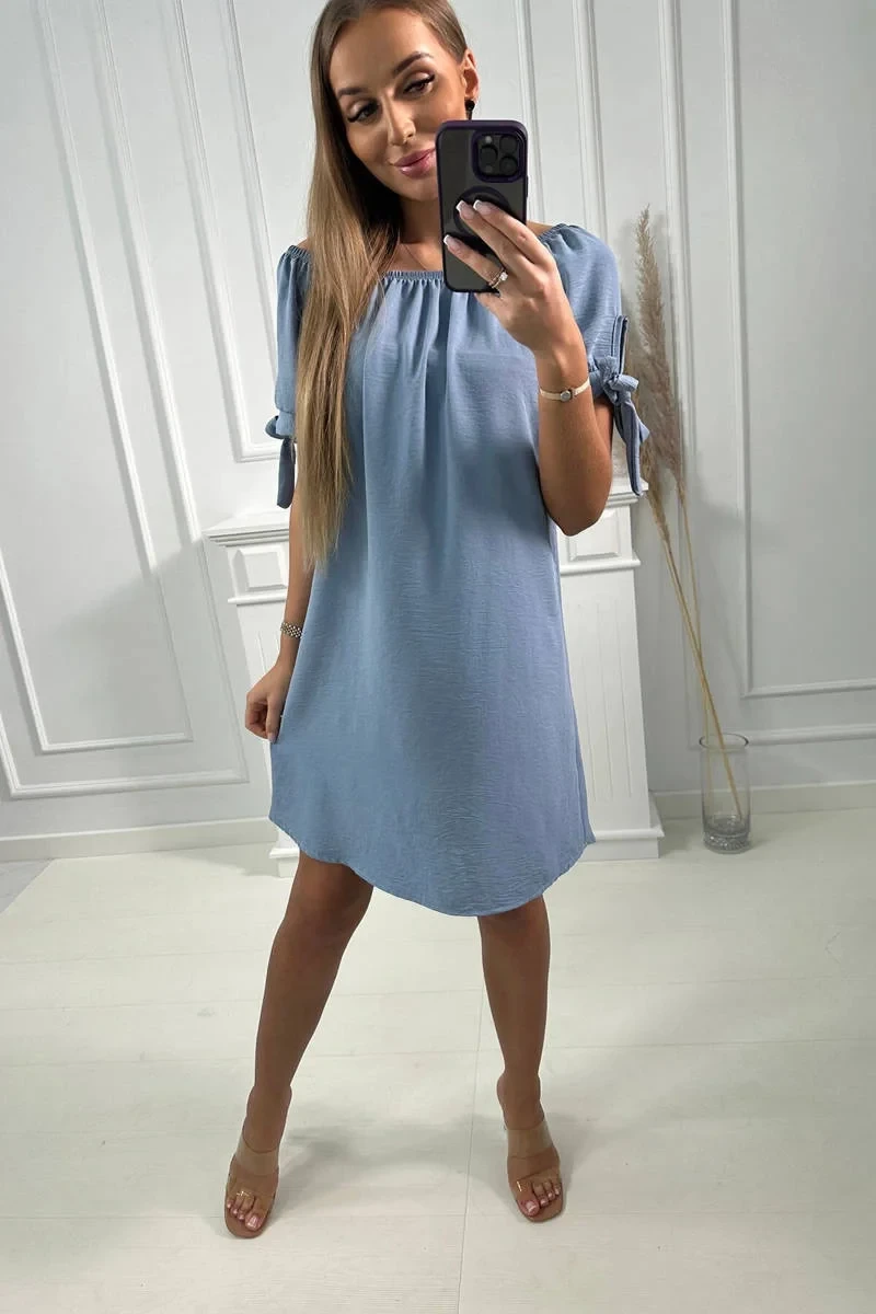 Šaty vázané na rukávech světlý denim