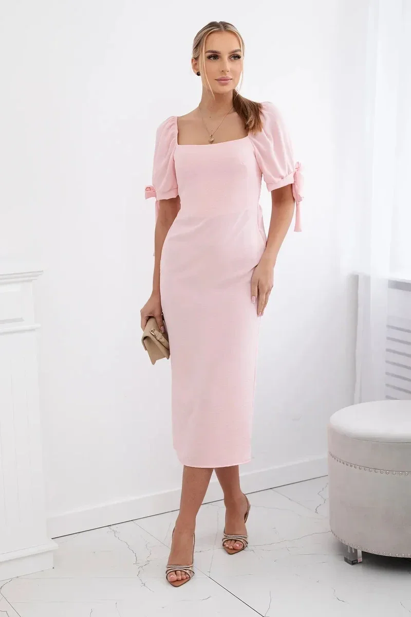 Šaty vzadu nařasené se zavazovacími rukávy světle růžová