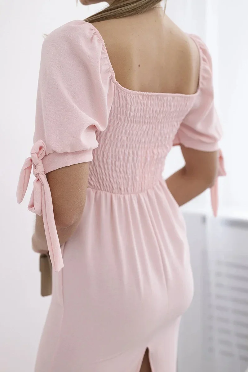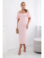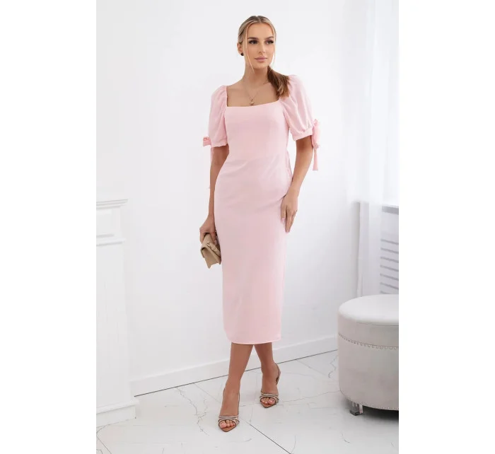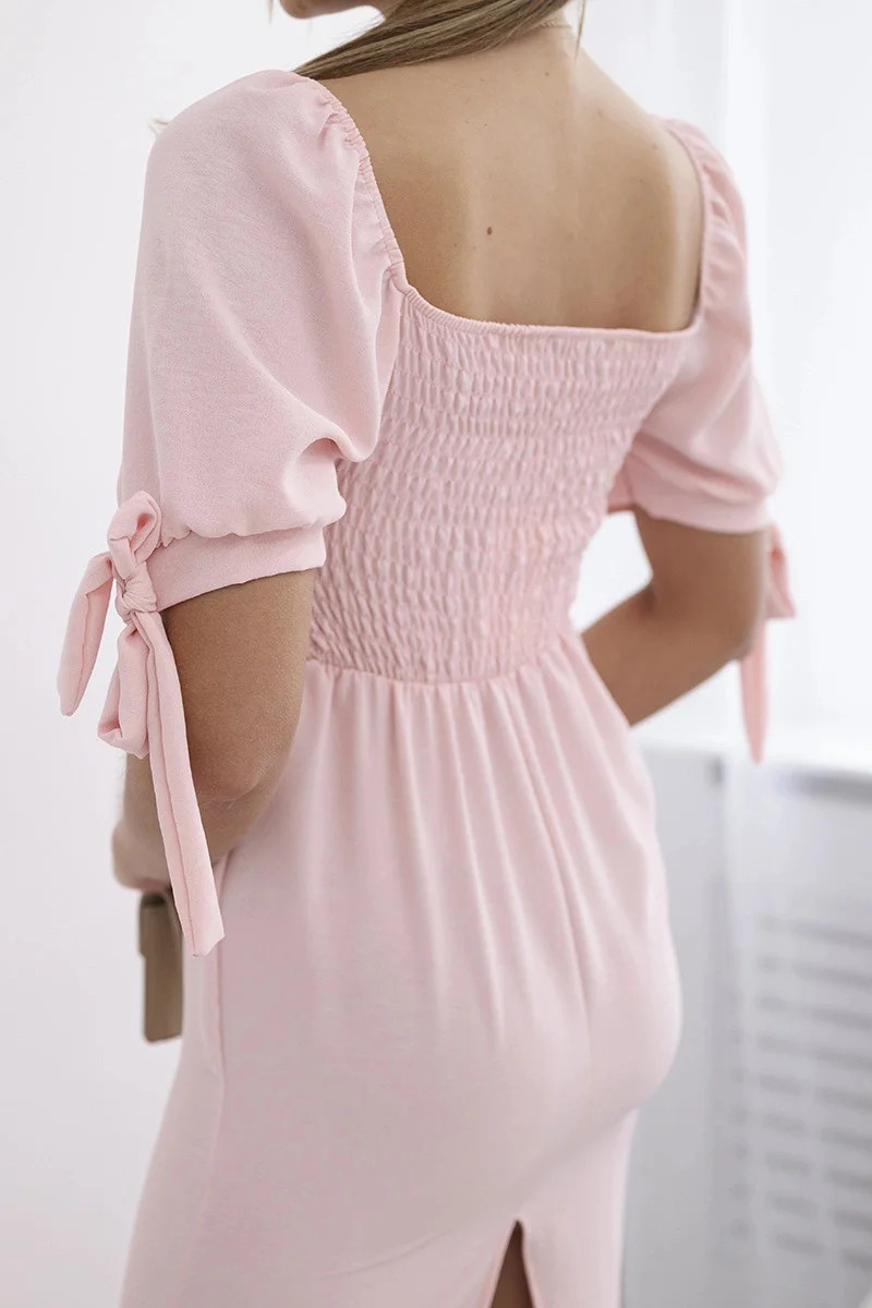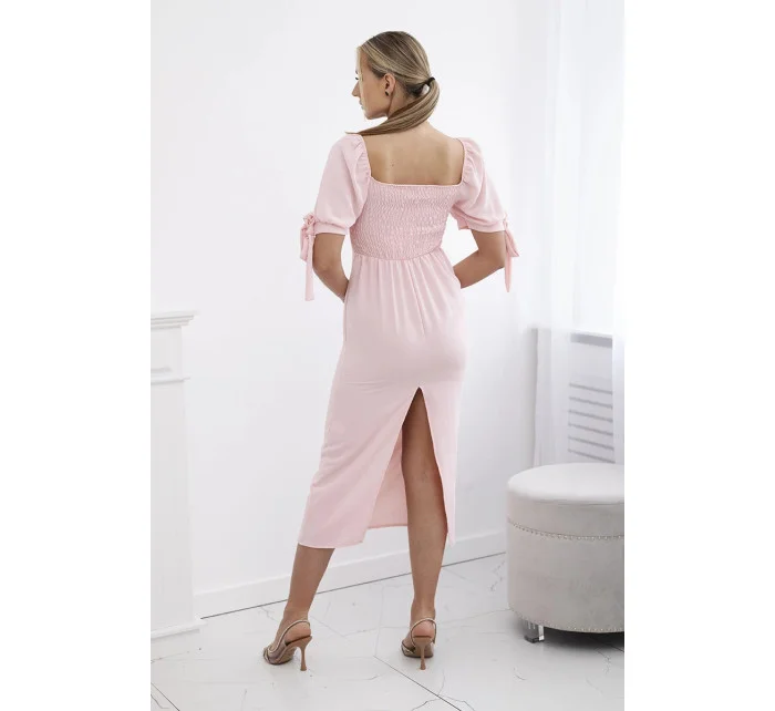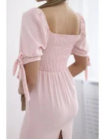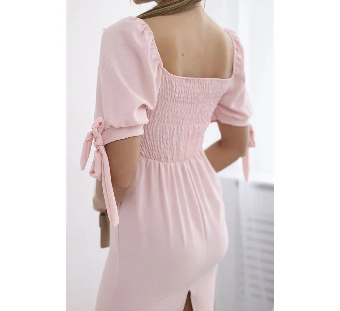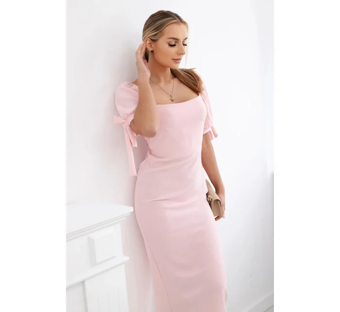 Šaty vzadu nařasené se zavazovacími rukávy světle růžová