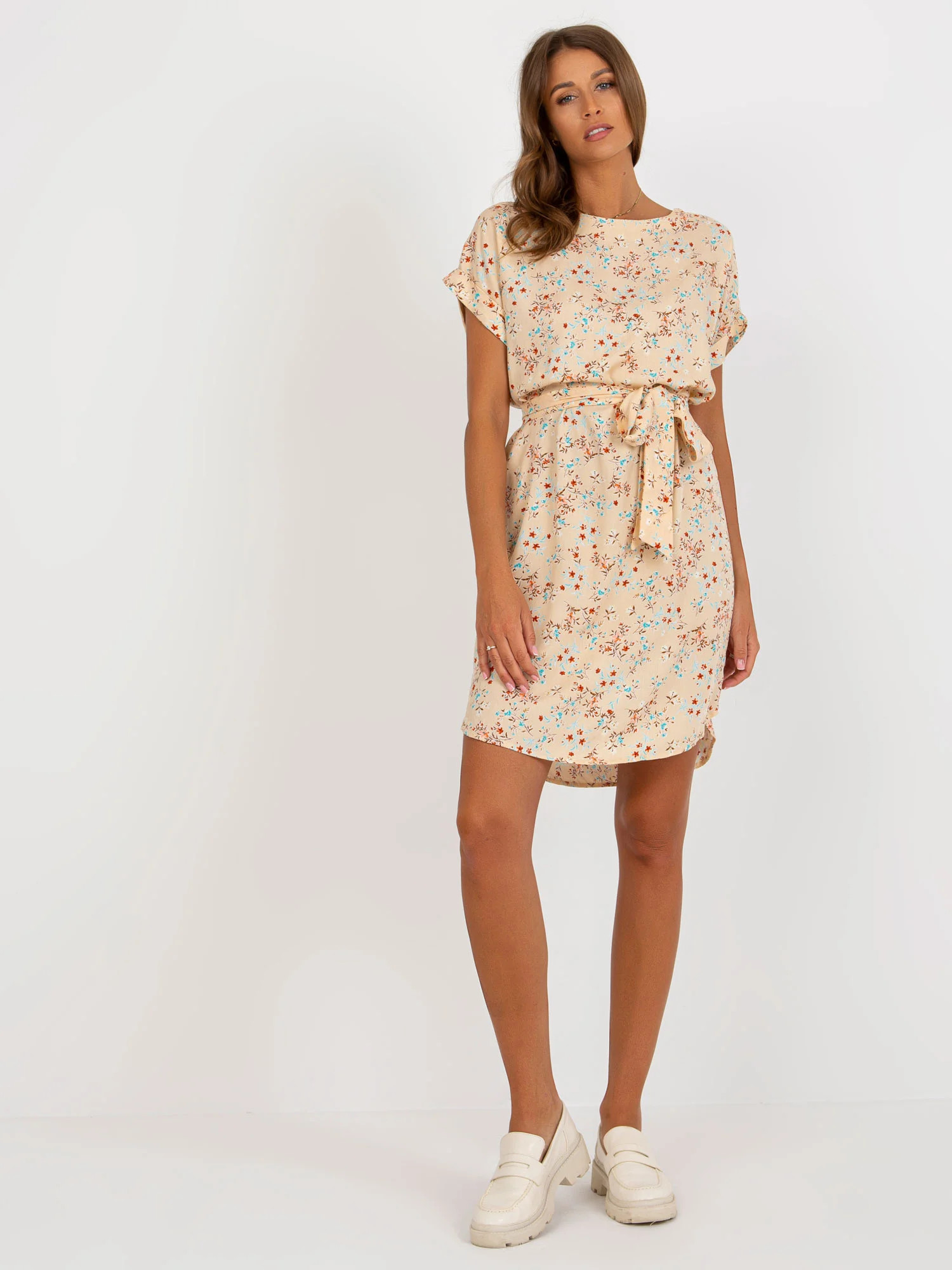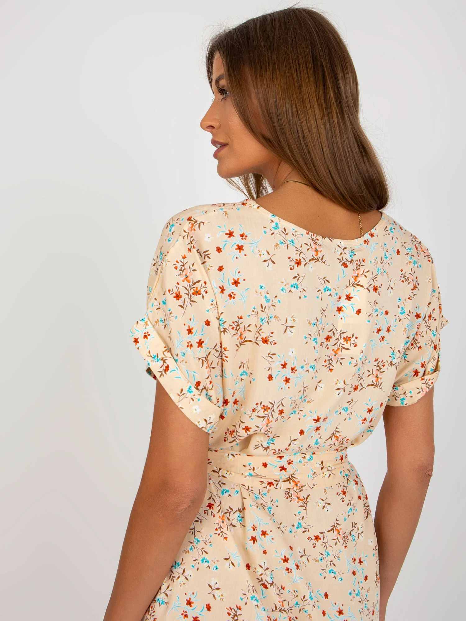 Béžové květinové šaty ke kolenům značky RUE PARIS .