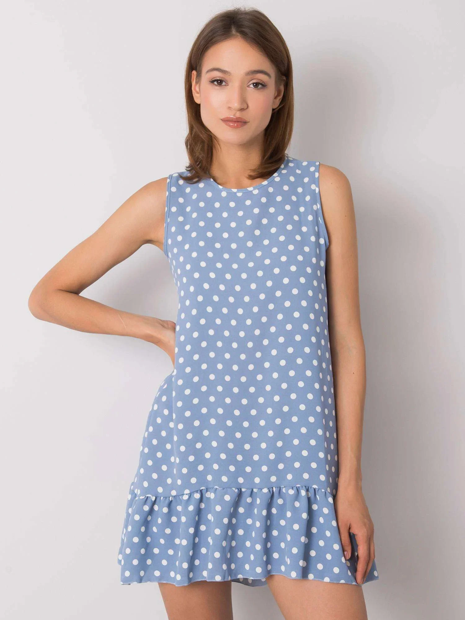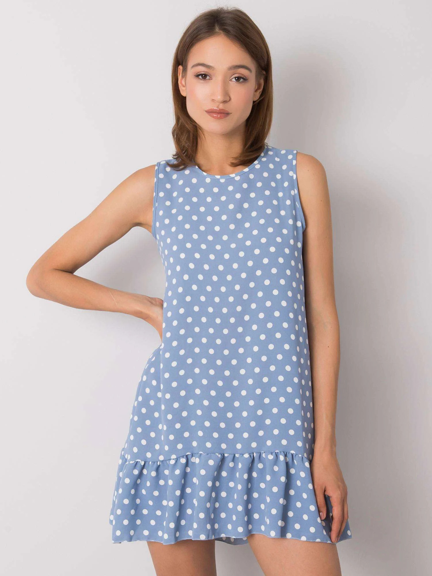 RUE PARIS Dámské modré šaty s puntíky.