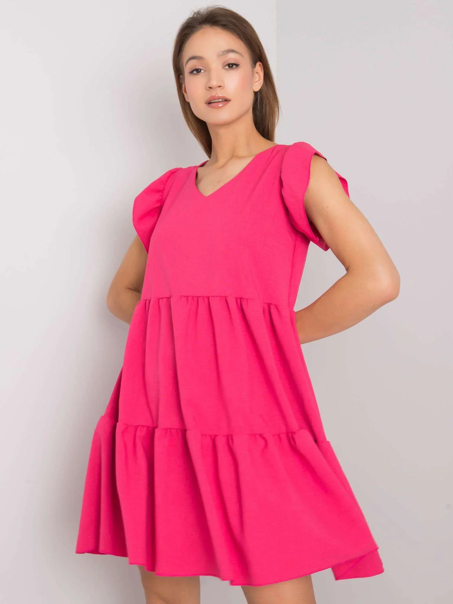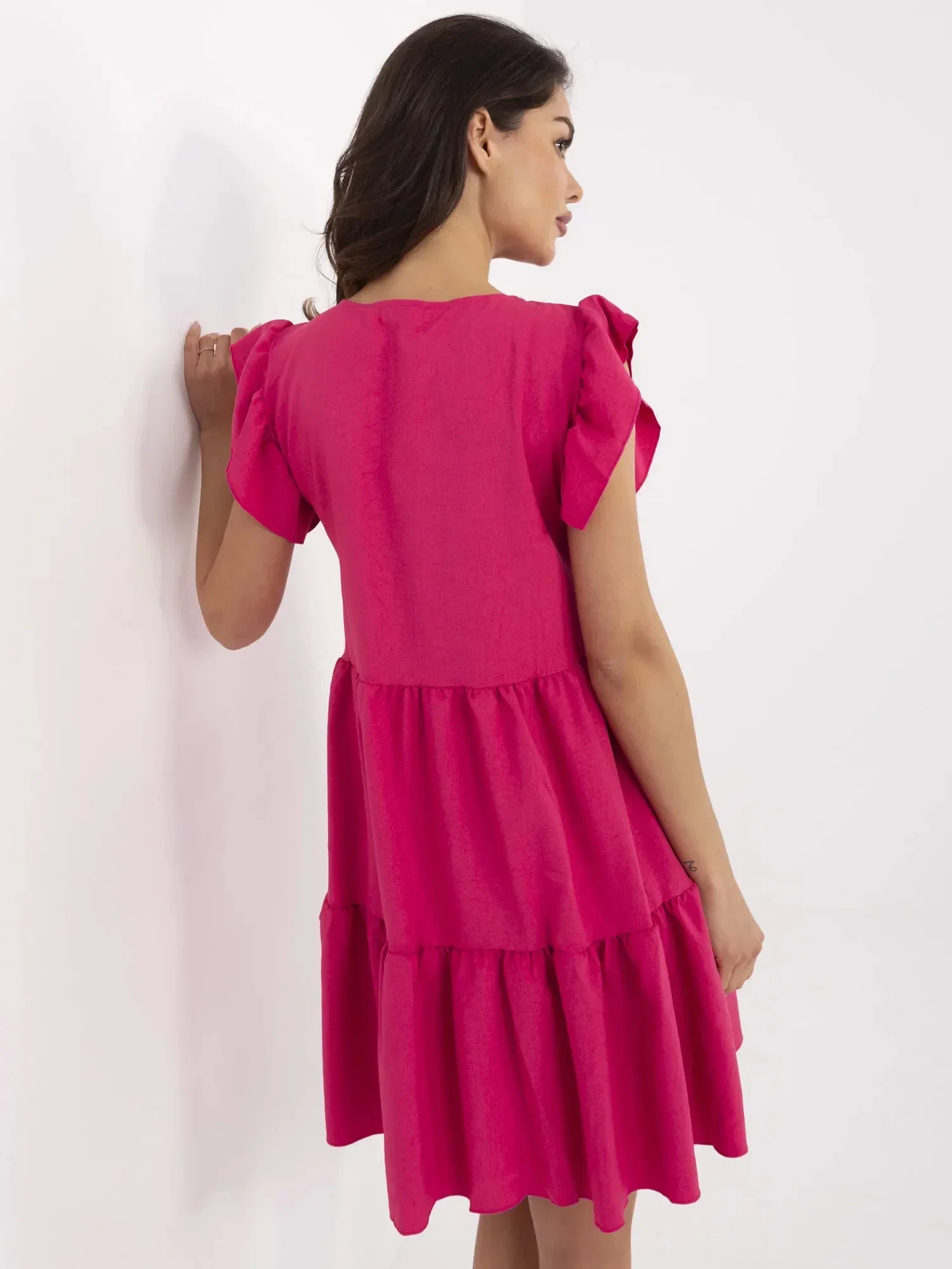 RUE PARIS Fuchsiové letní šaty s volánem .