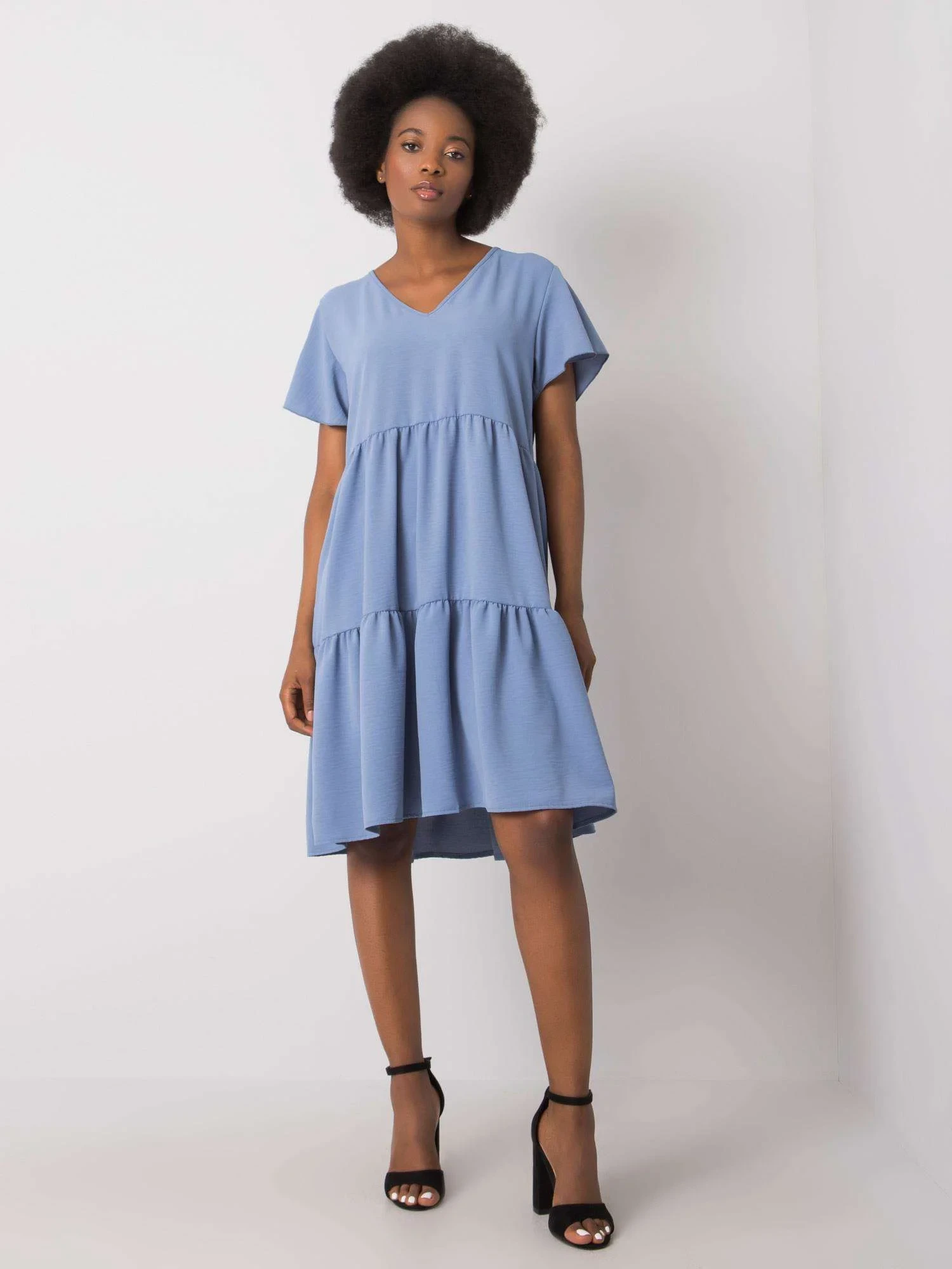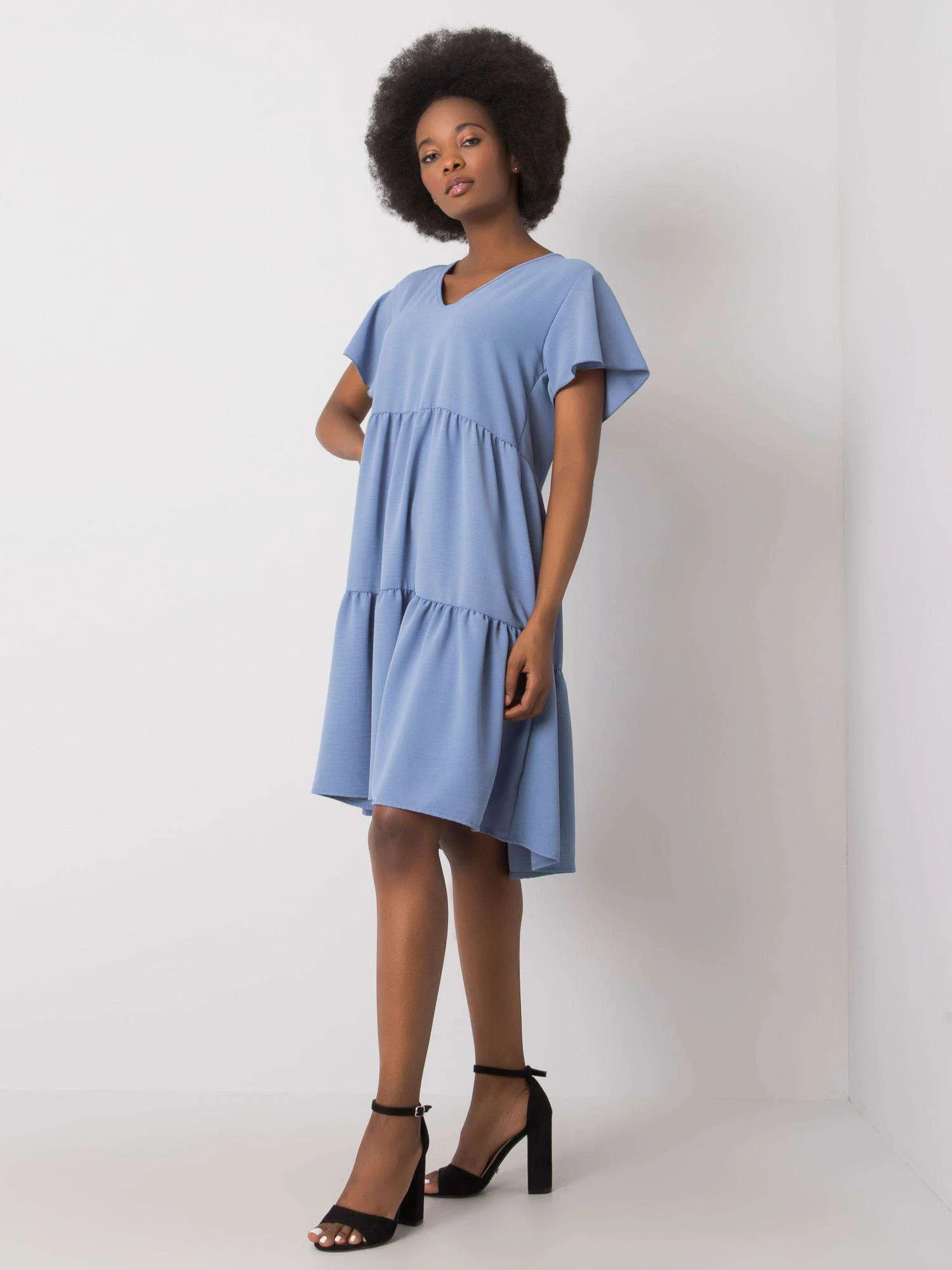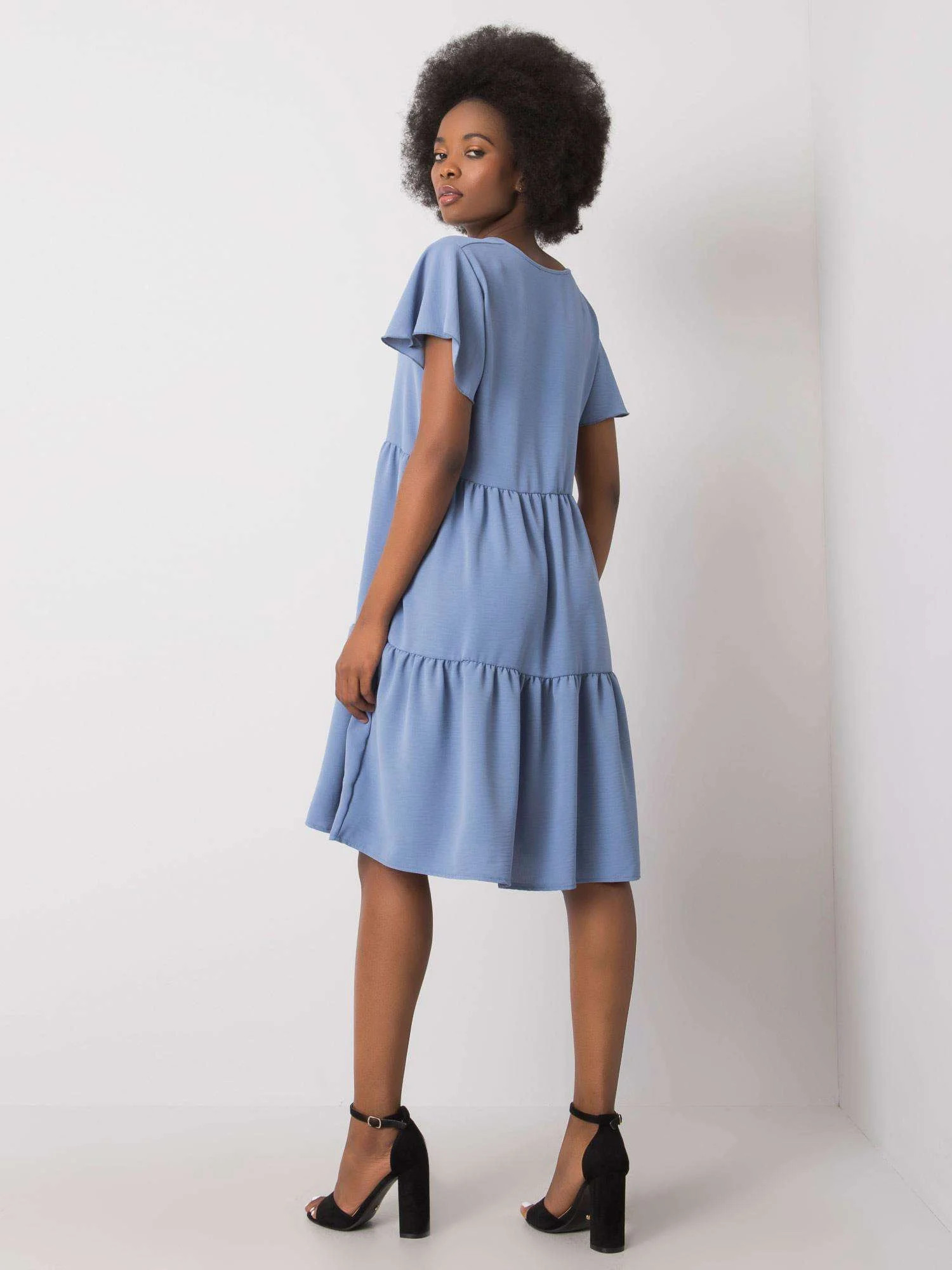 RUE PARIS Modré dámské šaty s volánem.