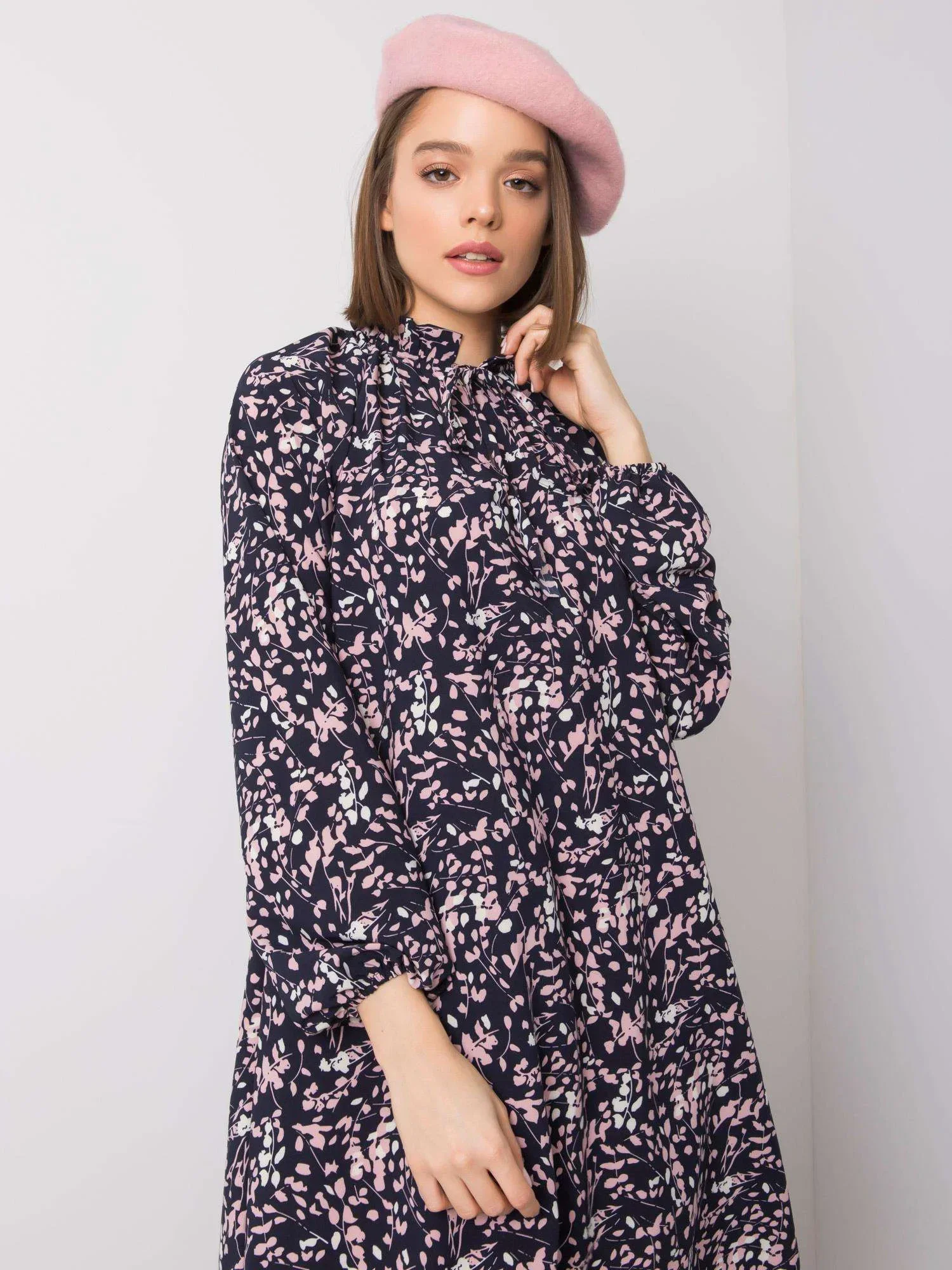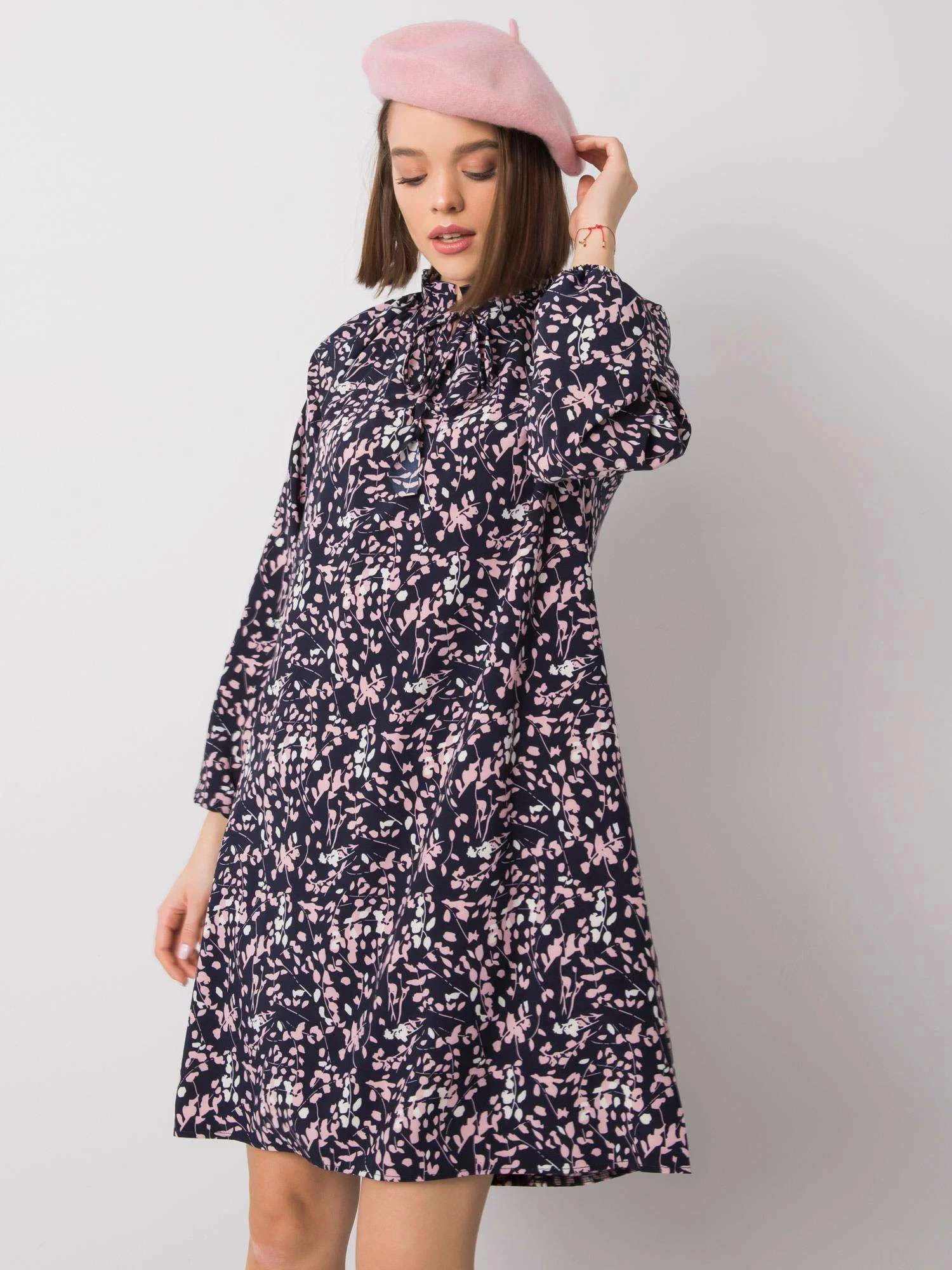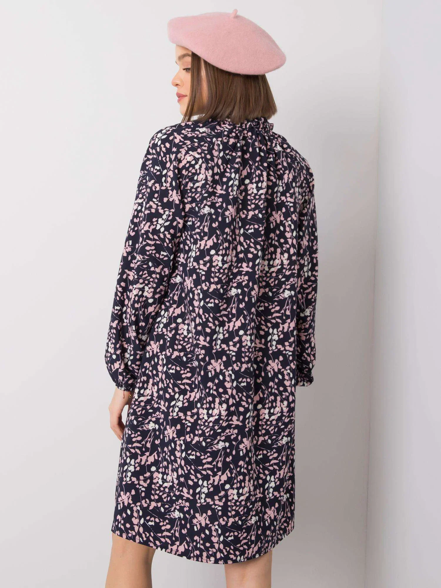 RUE PARIS Námořnicky modré volné vzorované šaty.