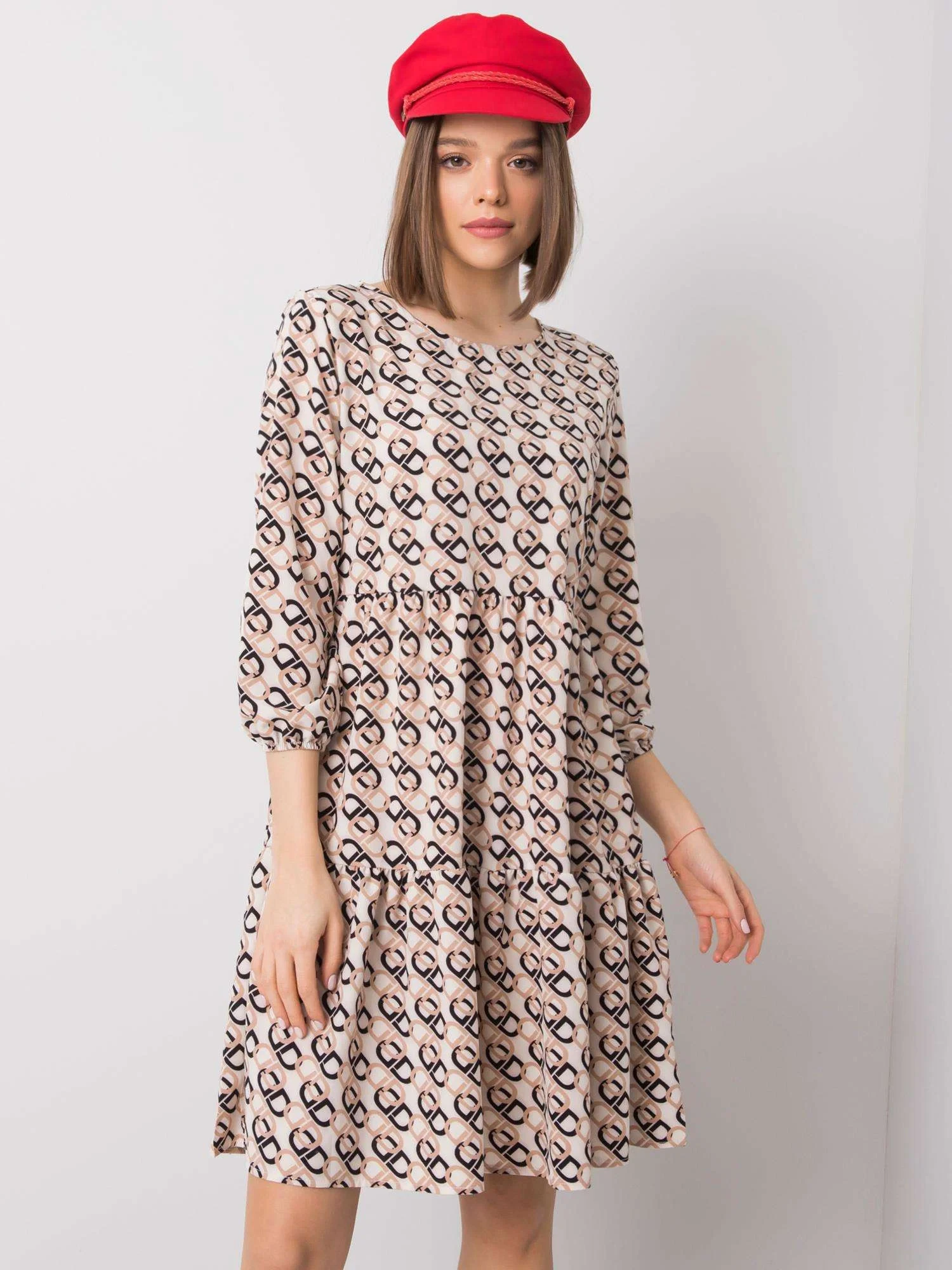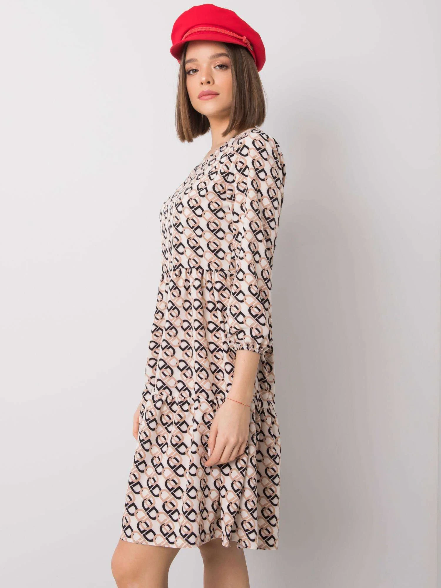 RUE PARIS Šaty se vzorem v barvě ecru.