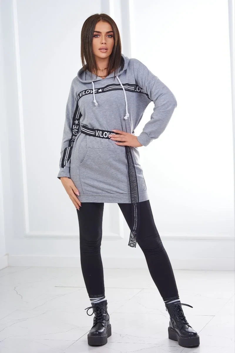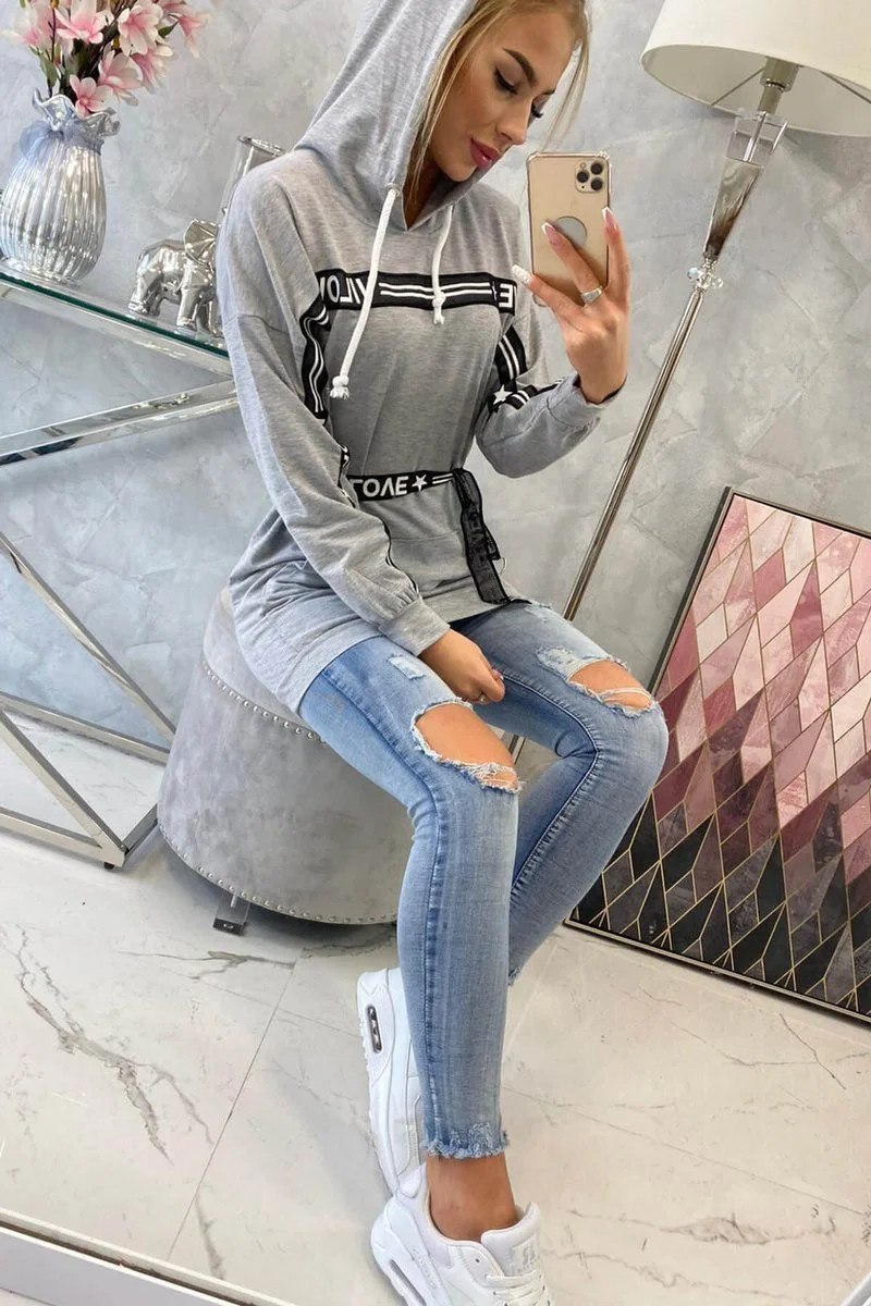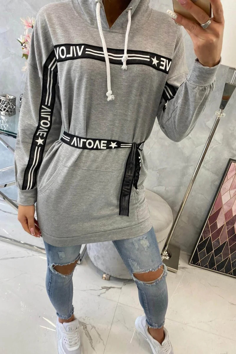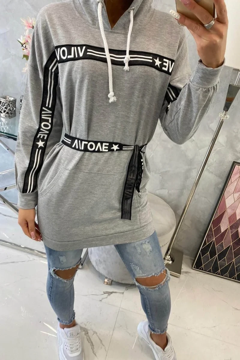 Představujeme vám pohodlné šaty. Šaty mají ozdobnou stuhu s nápisy. Šaty s kapucí a přední kapsou. Šaty jsou vyrobeny z vysoce kvalitního materiálu. Velikost je univerzální a vyhovuje dámám, které nosí velikost M, L nebo XL.