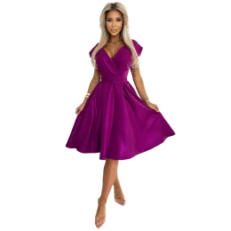 SCARLETT Rozšířené dámské šaty ve fuchsijové barvě s s přeloženým obálkovým výstřihem a páskem model 20141725 - numoco