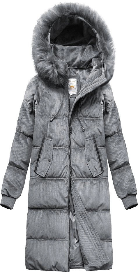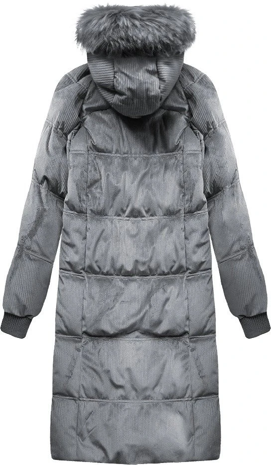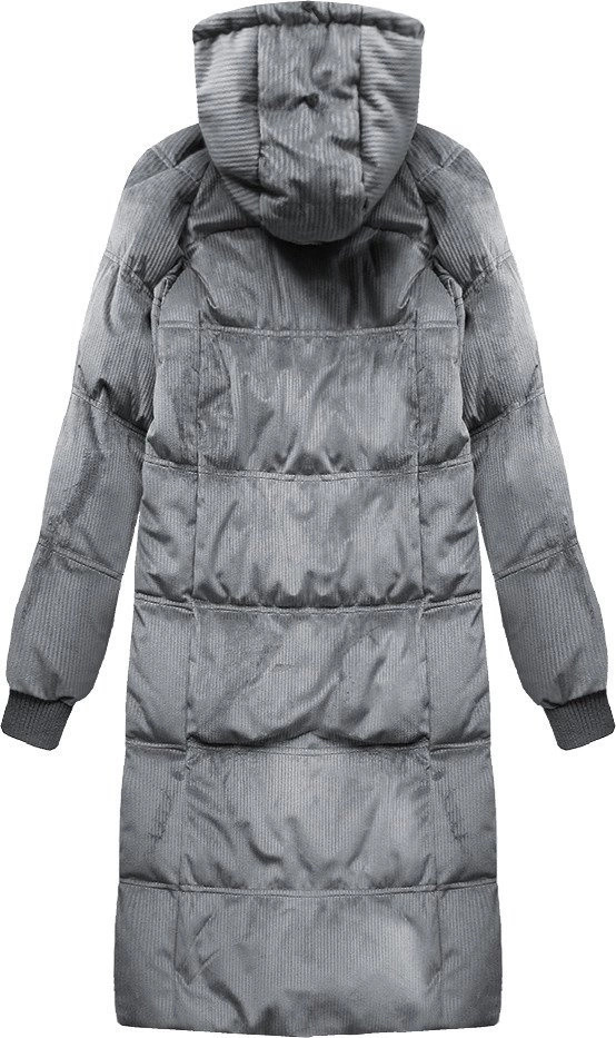 Šedá dámská manšestrová zimní bunda s kapucí (7763)