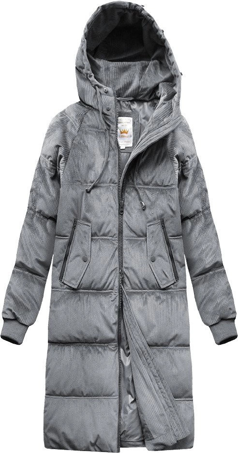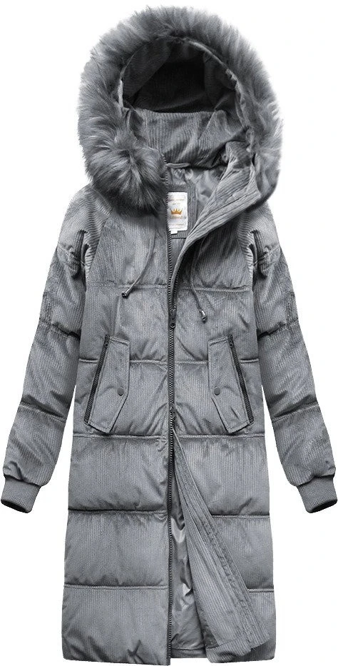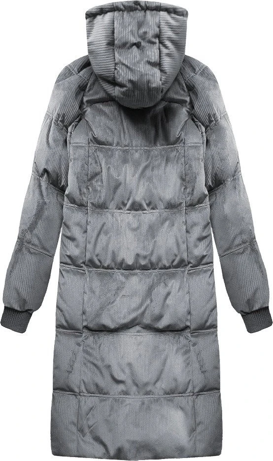 Přidání recenze k Šedá dámská manšestrová zimní bunda s kapucí (7763)