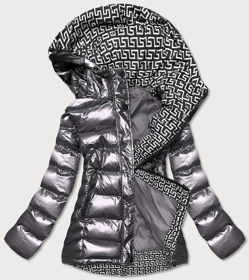Šedá dámská prošívaná bunda s kapucí (xw817x)