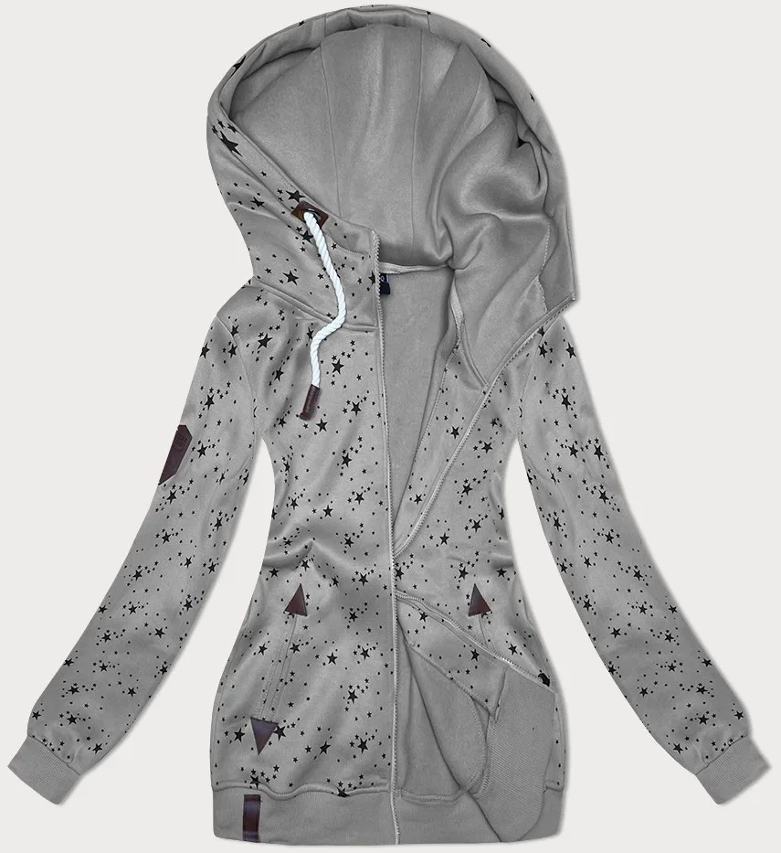 Šedá dámská rozepínací mikina se vzorem hvězdiček (2313)