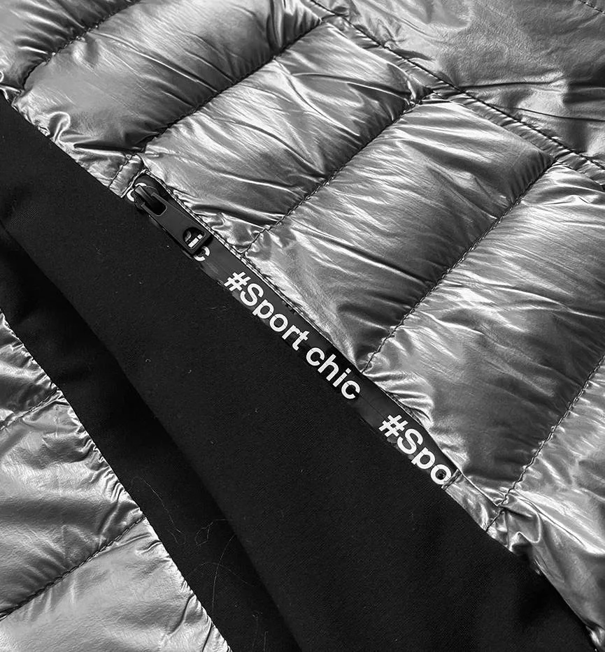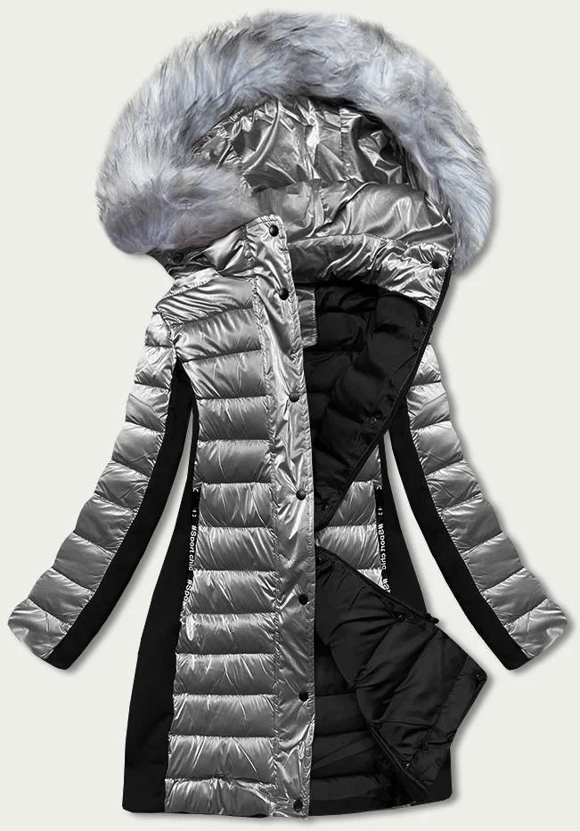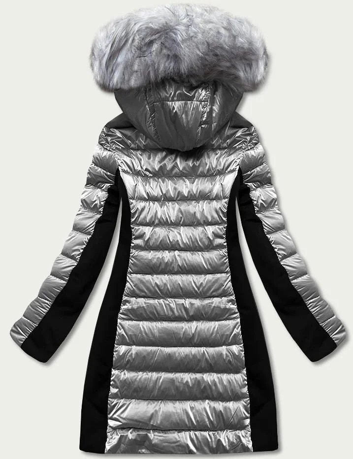 Šedá dámská zimní bunda z různých spojených materiálů (dk067-45)