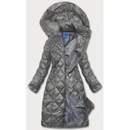 Šedá dlouhá dámská prošívaná bunda (ag1-j9082)