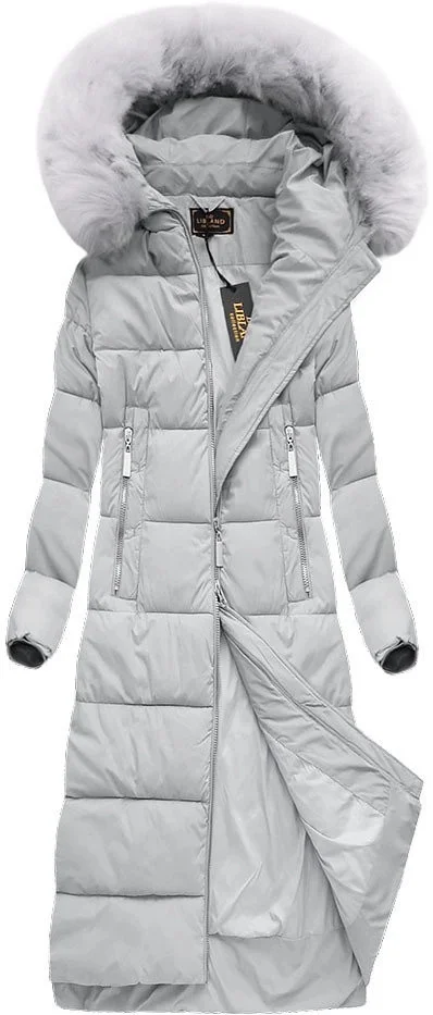 Přidání recenze k Šedá dlouhá dámská zimní bunda s kapucí (7688)