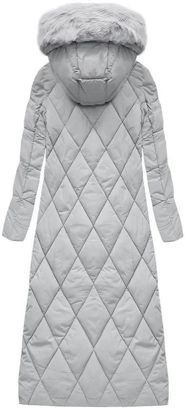 Šedá dlouhá dámská zimní bunda s kapucí (7688)