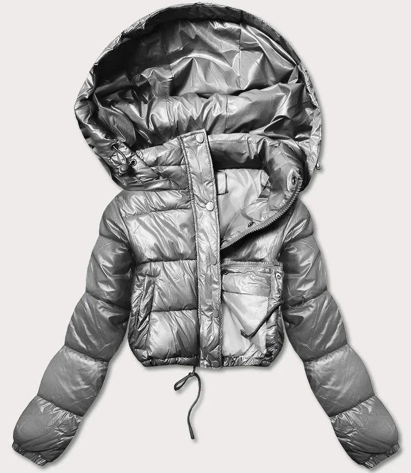 Šedá krátká péřová bunda typu crop (d2-3831-61)