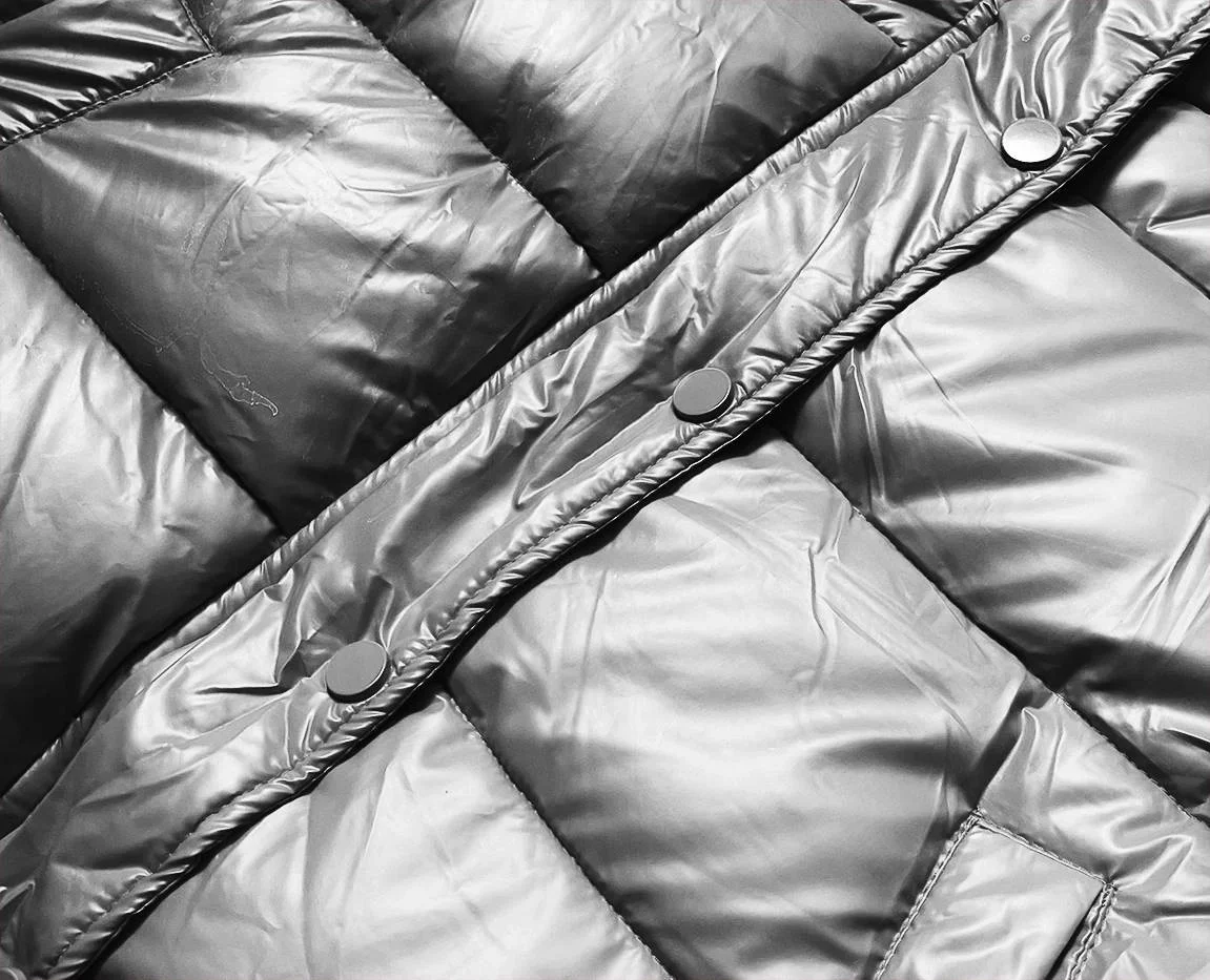 Bunda má dvě kapsy a zapíná se zipem a panelem s patentkami. Model má kapuci, kterou je možné odepnout. Rukávy jsou olemované stahovacími lemy. Na spodním okraji modelu je stahující šňůrka. Bunda má délku nad pas.