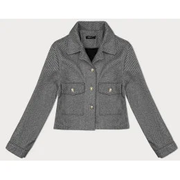 Šedá krátká pruhovaná žebrovaná bunda s ozdobnými knoflíky (244002)
