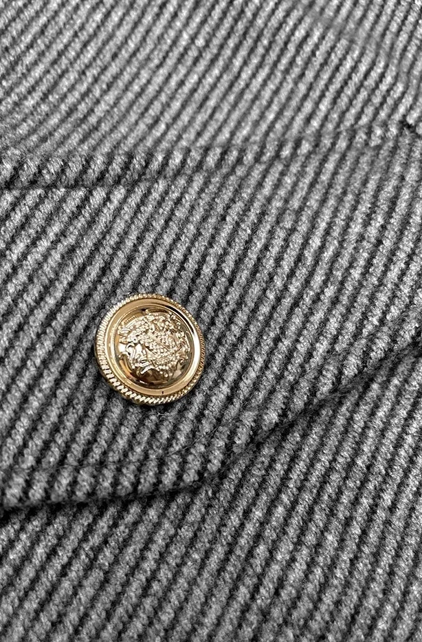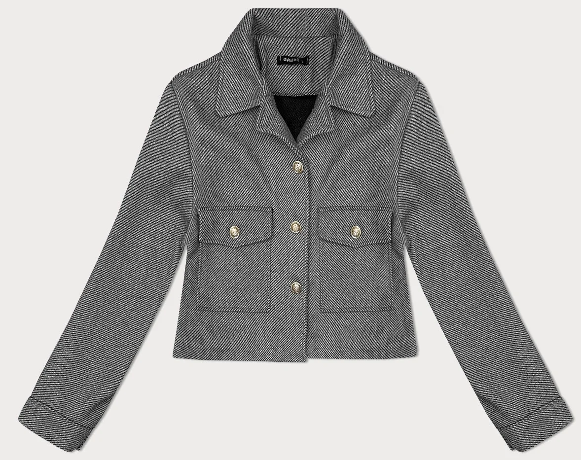 Šedá krátká pruhovaná žebrovaná bunda s ozdobnými knoflíky model 19739206 - MADE IN ITALY