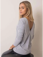 Šedá melanžová halenka s výstřihem na zádech.