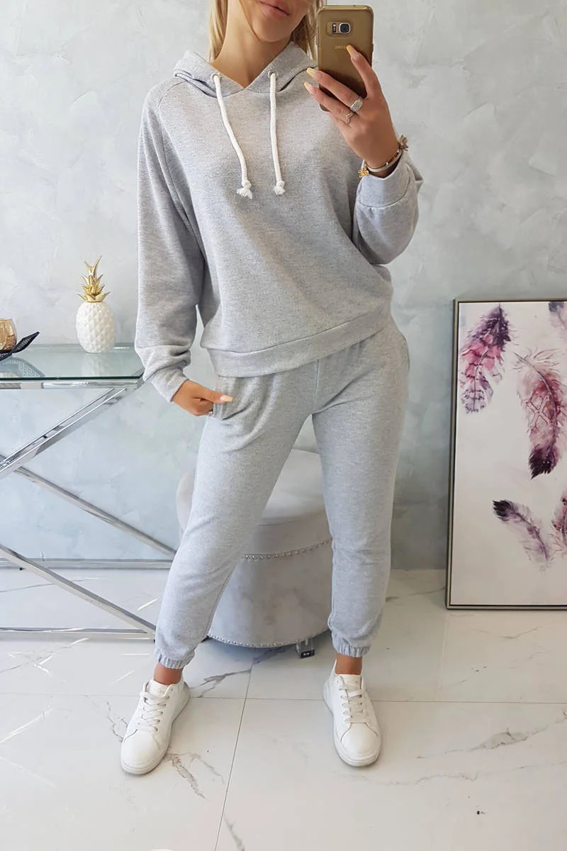 Představujeme vám sadu mikiny a kalhot. Obyčejná mikina s kapucí bez potisků. Kalhoty s kapsami. Sada je vyrobena z vysoce kvalitního materiálu. Velikost je univerzální a vyhovuje dámám velikosti S, M nebo L.