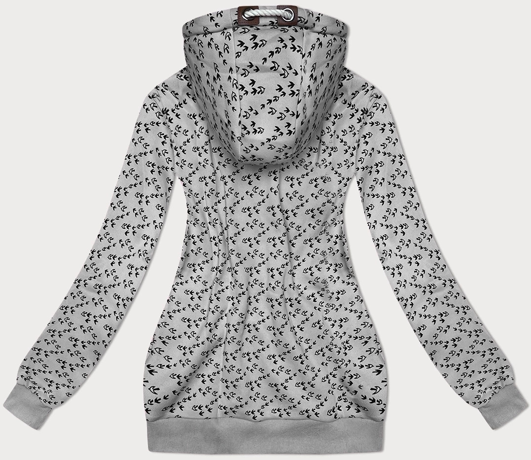 Šedá sportovní mikina s kapucí a se vzorem vlaštovek (2309)