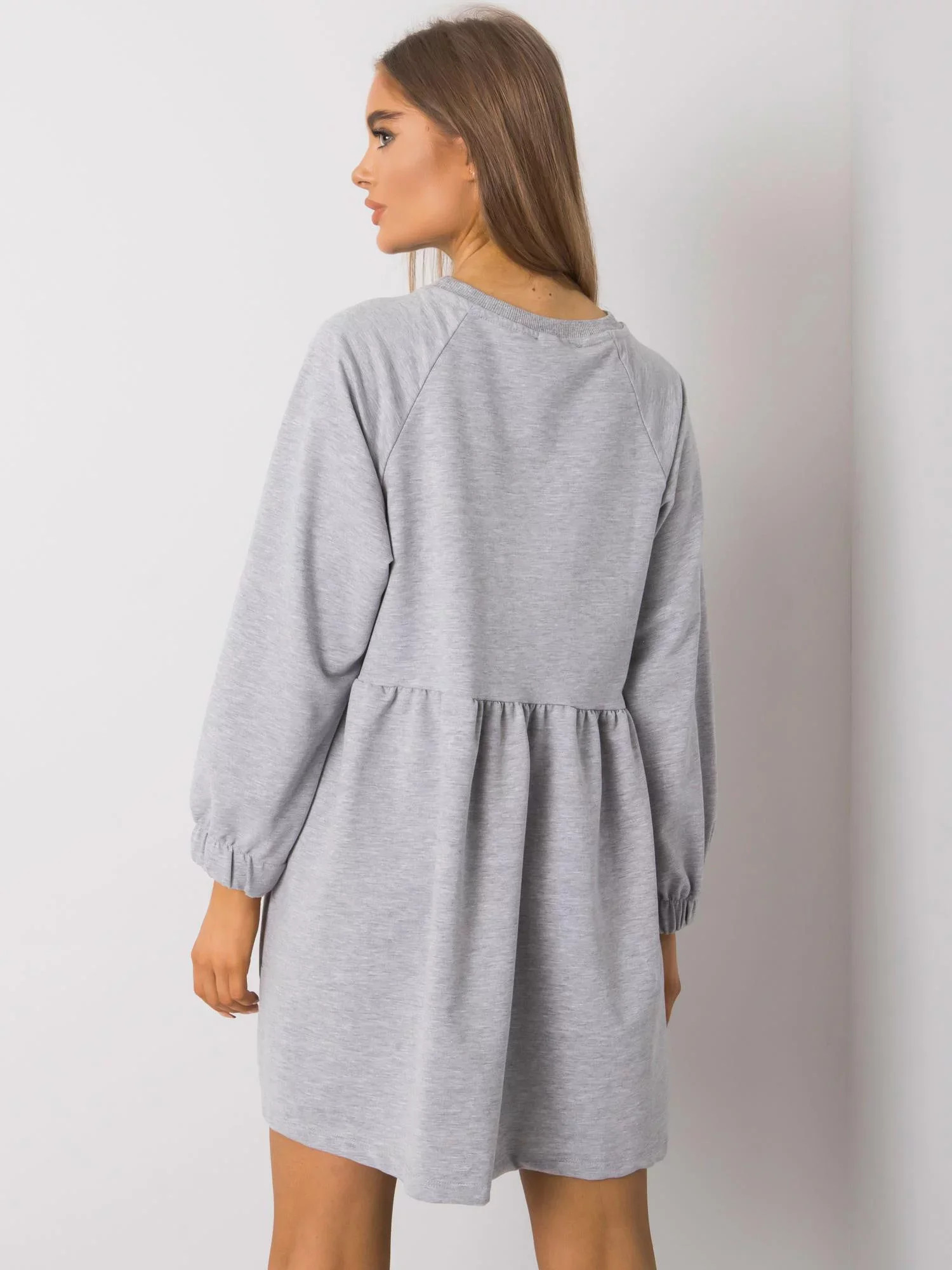 Šedé melanžové základní šaty s dlouhými rukávy .