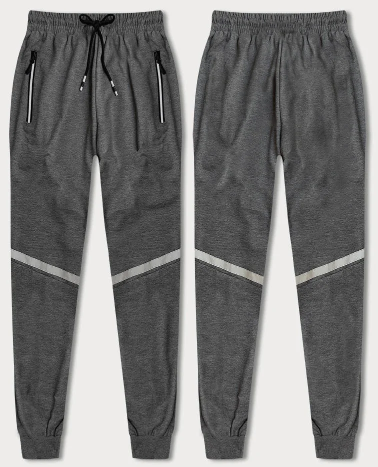 Šedé pánské teplákové kalhoty s reflexními prvky (8K189-5)