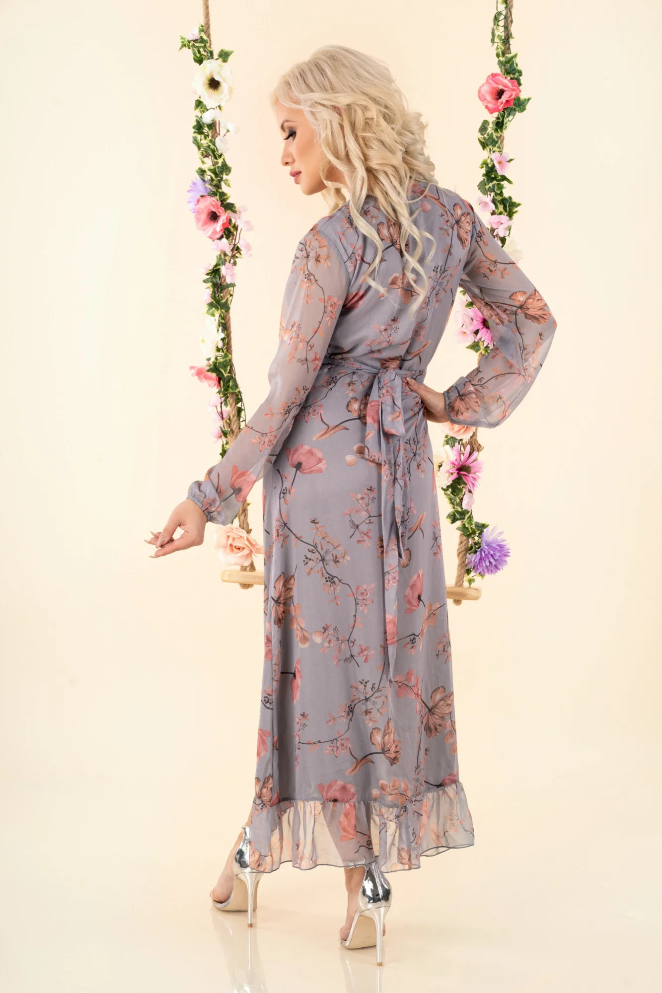 Dlouhé šaty z měkké a vzdušné látky, ideální pro jarní a letní sezónu. Střih španělského typu s vrstveným výstřihem, volánkem a rozparkem vpředu, který odhaluje nohavice. Zavazování v pase. Složení: 95% polyester, 5% elastan.