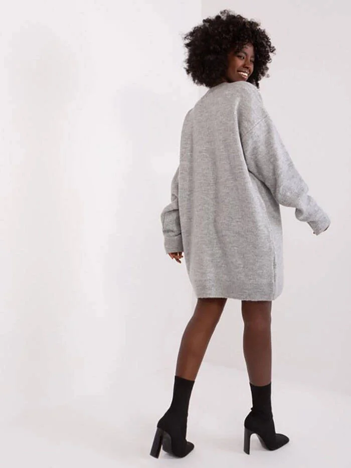 Šedé svetříkové oversize šaty Rue Paris (0568)