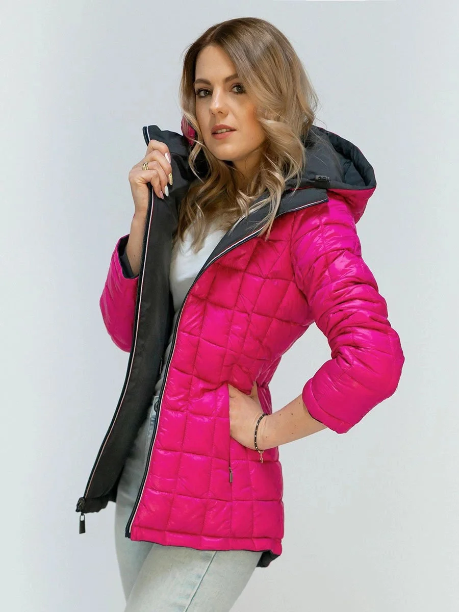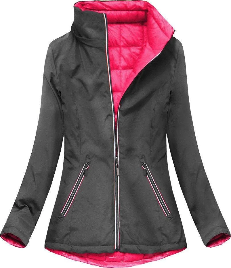 Šedo-amarantová oboustranná bunda pro přechodné období (7699)
