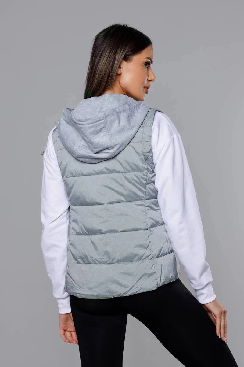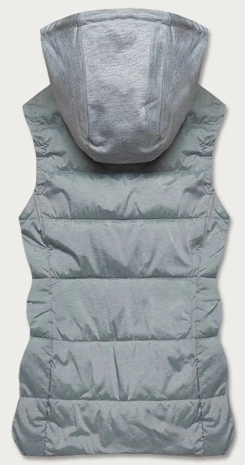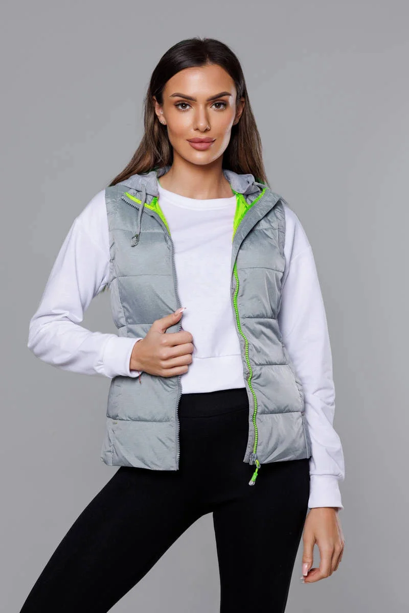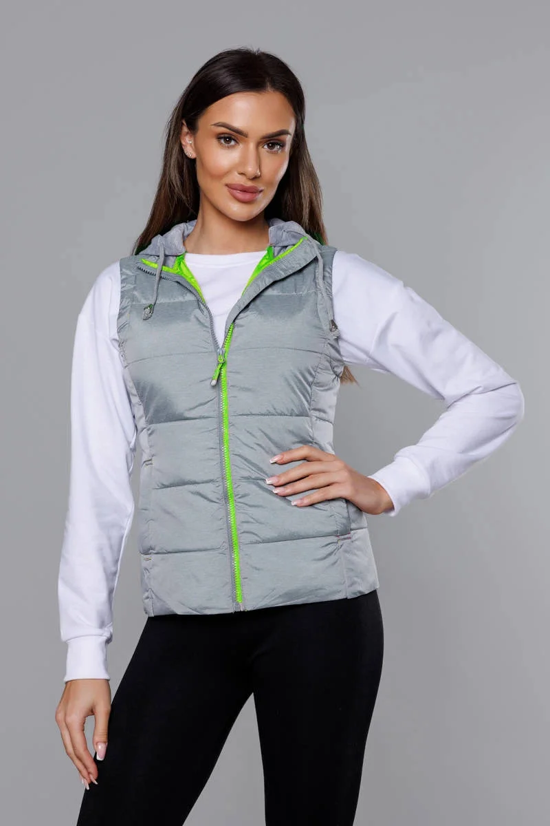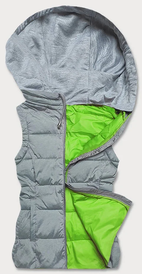 Šedo-limetková dámská vesta s látkovou kapucí (DW-21604)
