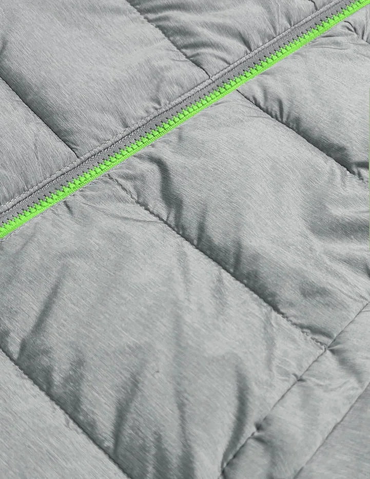 Přidání recenze k Šedo-limetková dámská vesta s látkovou kapucí (DW-21604)