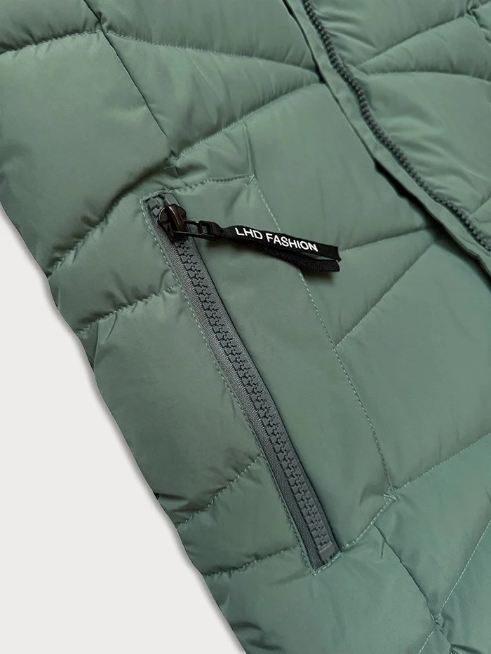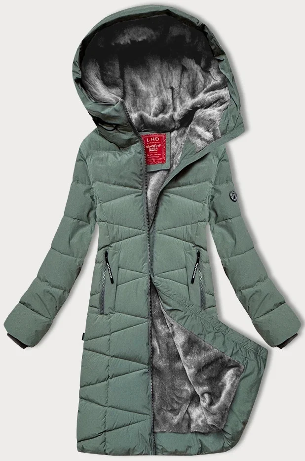 Přidání recenze k Šedozelená dámská zimní bunda s kožešinovou podšívkou LHD (LHD-24578)