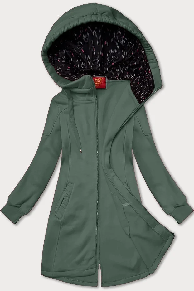 Šedozelená dlouhá dámská rozepínací mikina s kapucí LHD (AMG-693A)