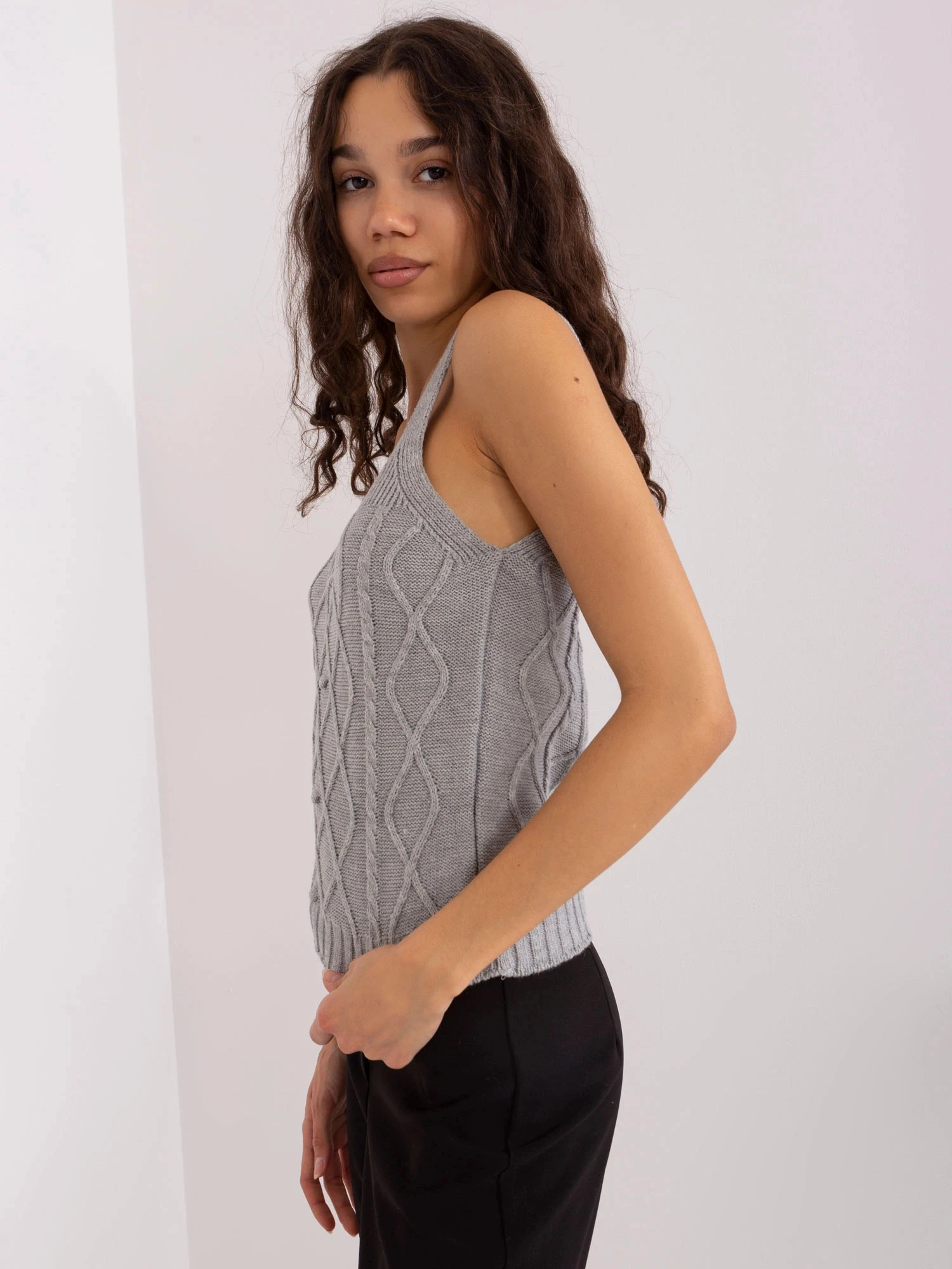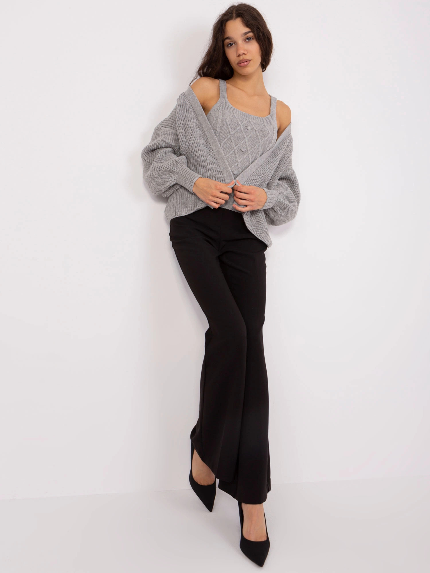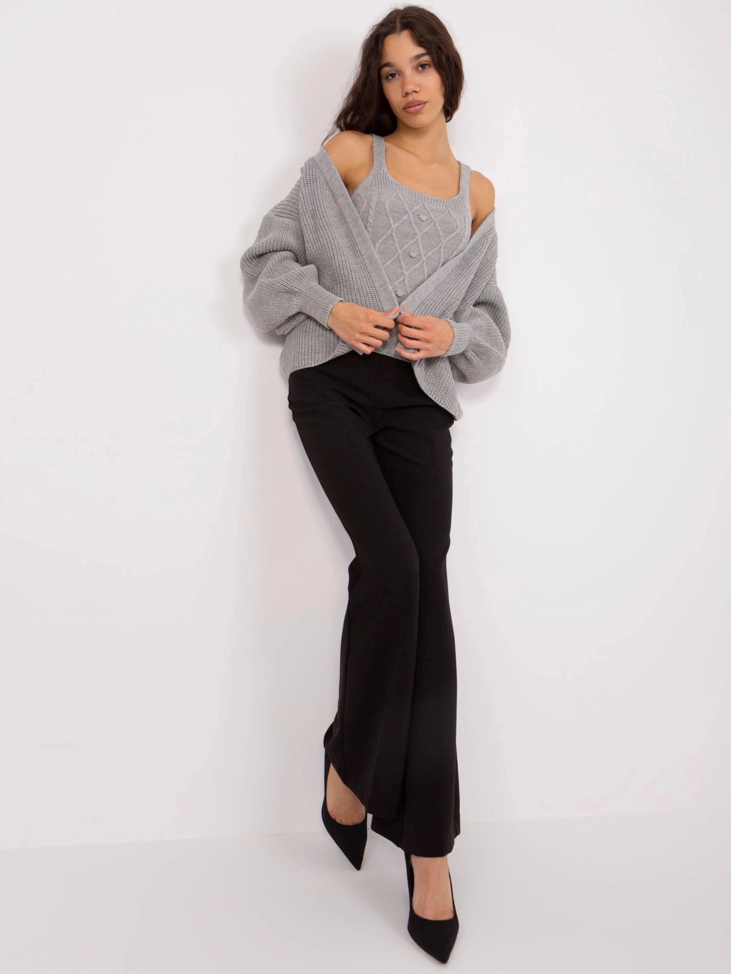 Přidání recenze k Šedý dámský dvoudílný komplet - top a svetr (8019)