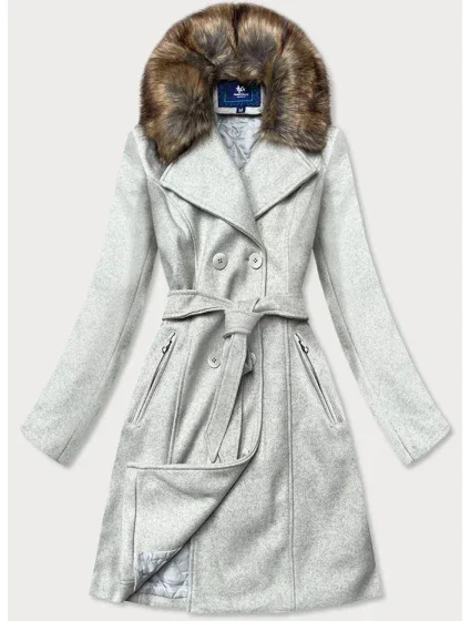 Šedý dámský kabát s kožešinou model 15834449 - Ann Gissy