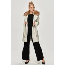Šedý dámský kabát s kožešinou model 15834449 - Ann Gissy
