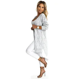Přidání recenze k Šedý dámský kardigan přehoz přes oblečení s delší zadní částí a s ažurovým vzorem model 18854393 - numoco basic