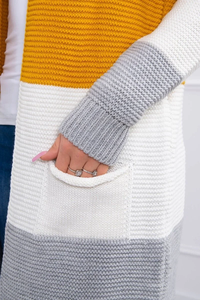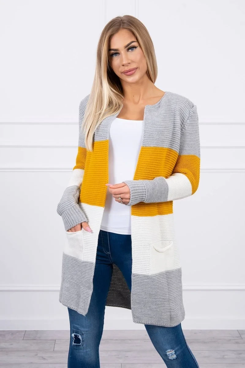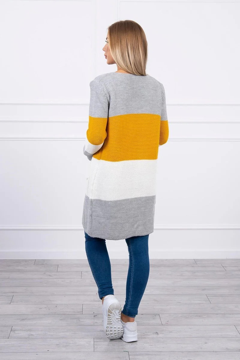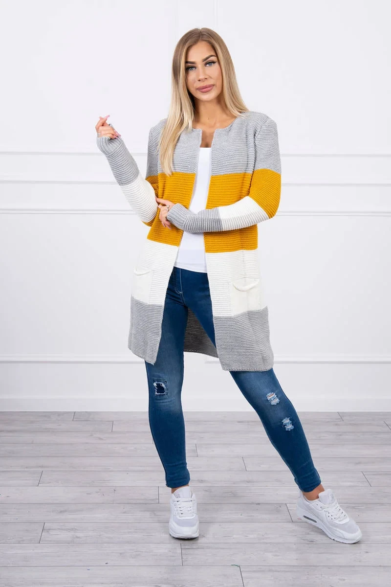 Představujeme vám dlouhý svetr se širokými pruhy. Svetr s dlouhým rukávem a rozepínáním. Na přední straně má dvě praktické kapsy. Velmi módní kombinace barev. Ideální pro jakýkoli styl. Svetr je vyroben z vysoce kvalitního materiálu. Velikost je univerzální a vyhovuje dámám ve velikostech M, L, XL.