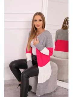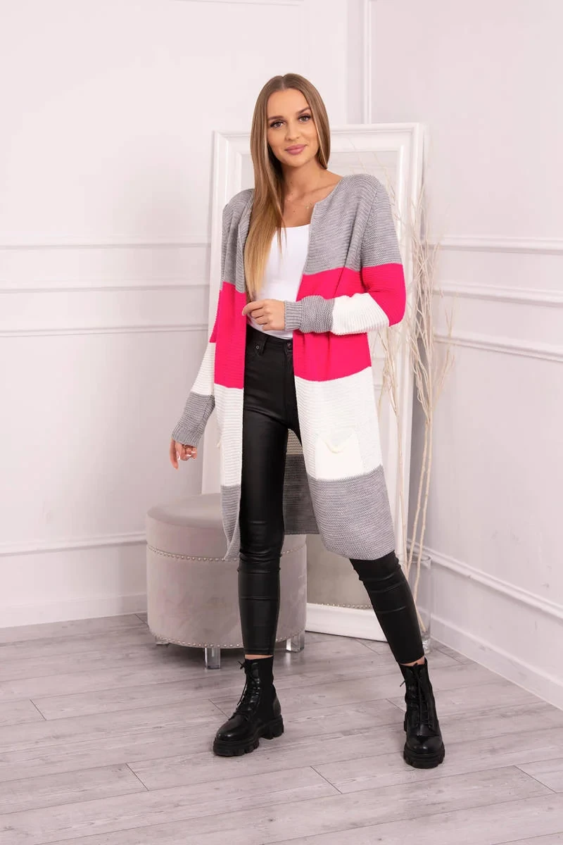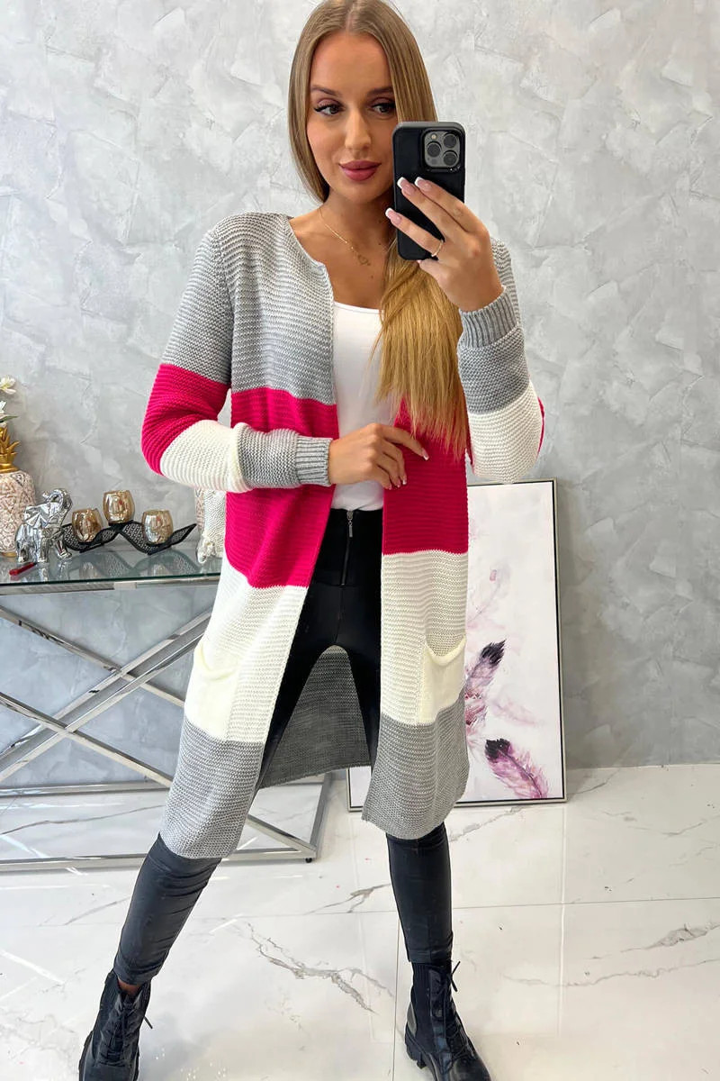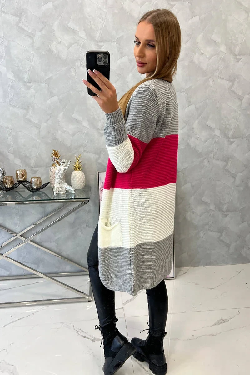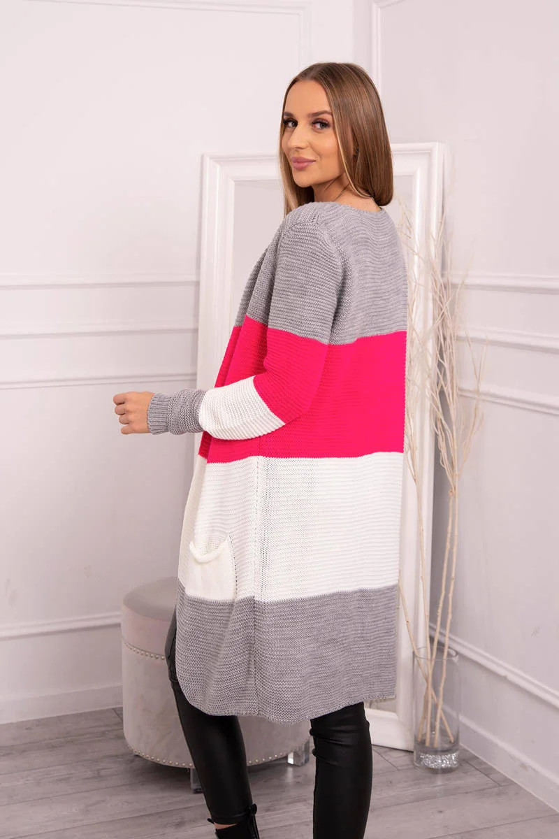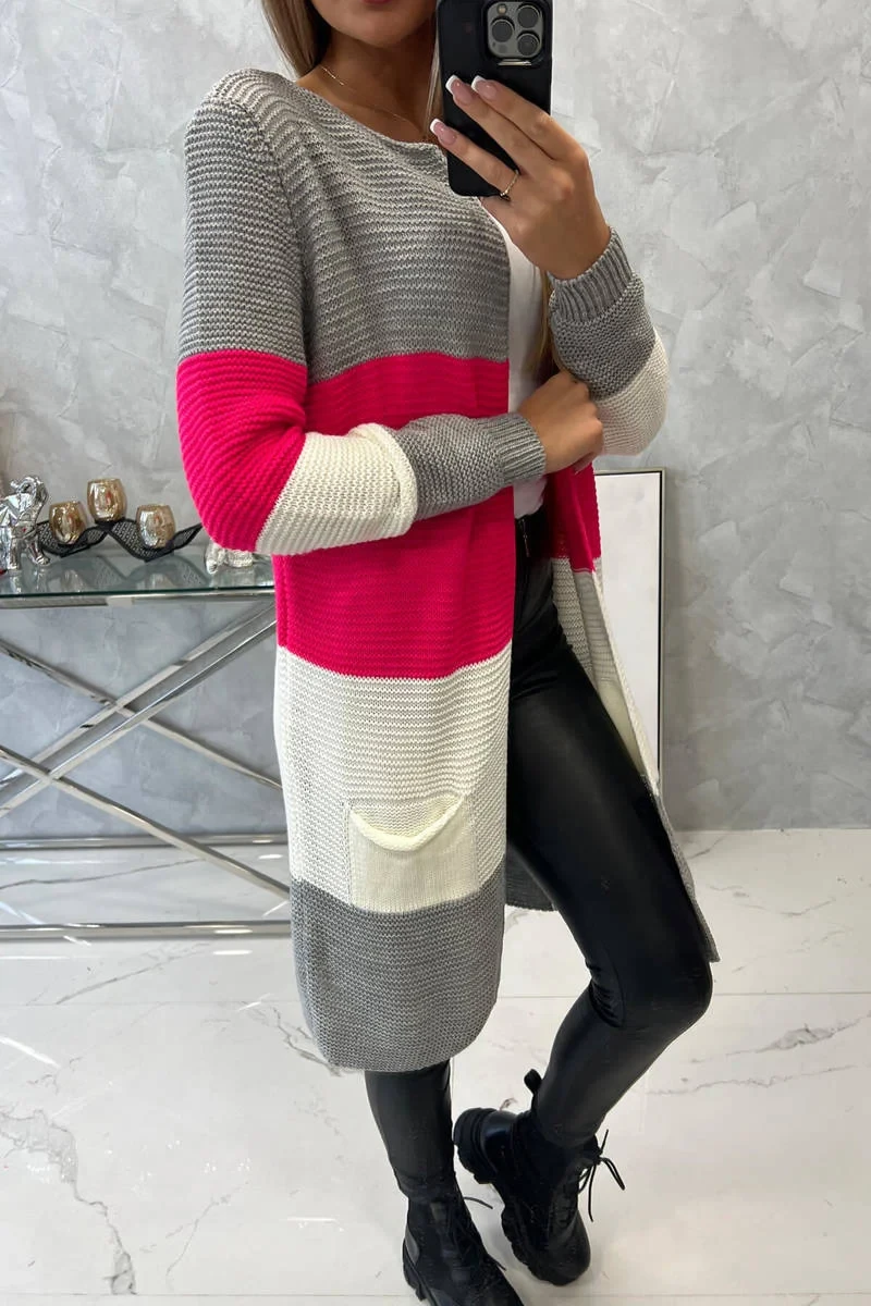 Představujeme vám dlouhý svetr se širokými pruhy. Svetr s dlouhým rukávem a rozepínáním. Na přední straně má dvě praktické kapsy. Velmi módní kombinace barev. Ideální pro jakýkoli styl. Svetr je vyroben z vysoce kvalitního materiálu. Velikost je univerzální a vyhovuje dámám ve velikostech M, L, XL