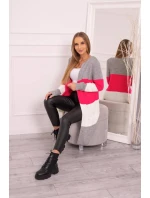 Šedý+malinový pruhovaný svetr