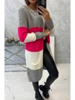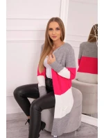 Přidání recenze k Šedý+malinový pruhovaný svetr