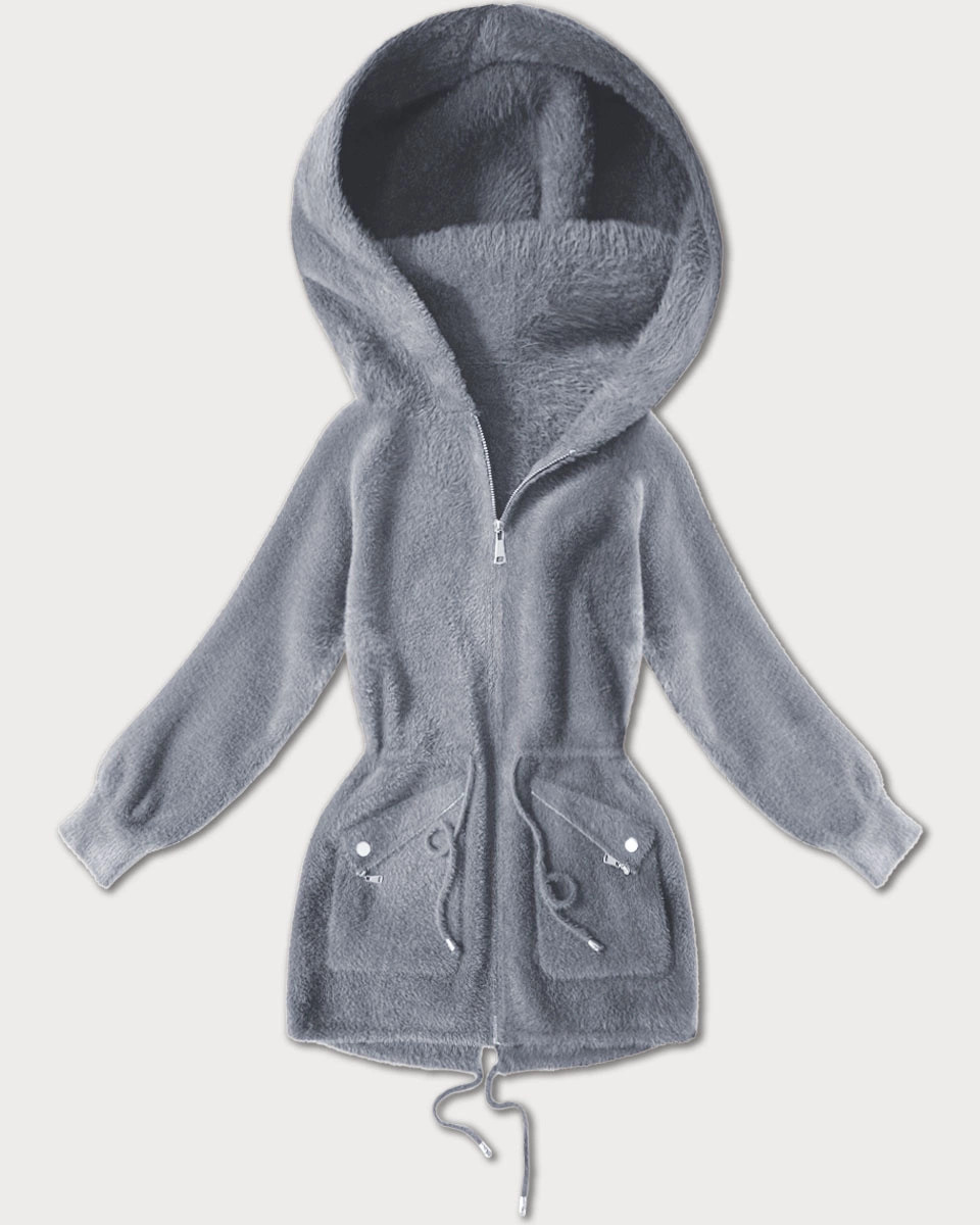 Šedý přehoz přes oblečení typu alpaka s kapsami (W010#)