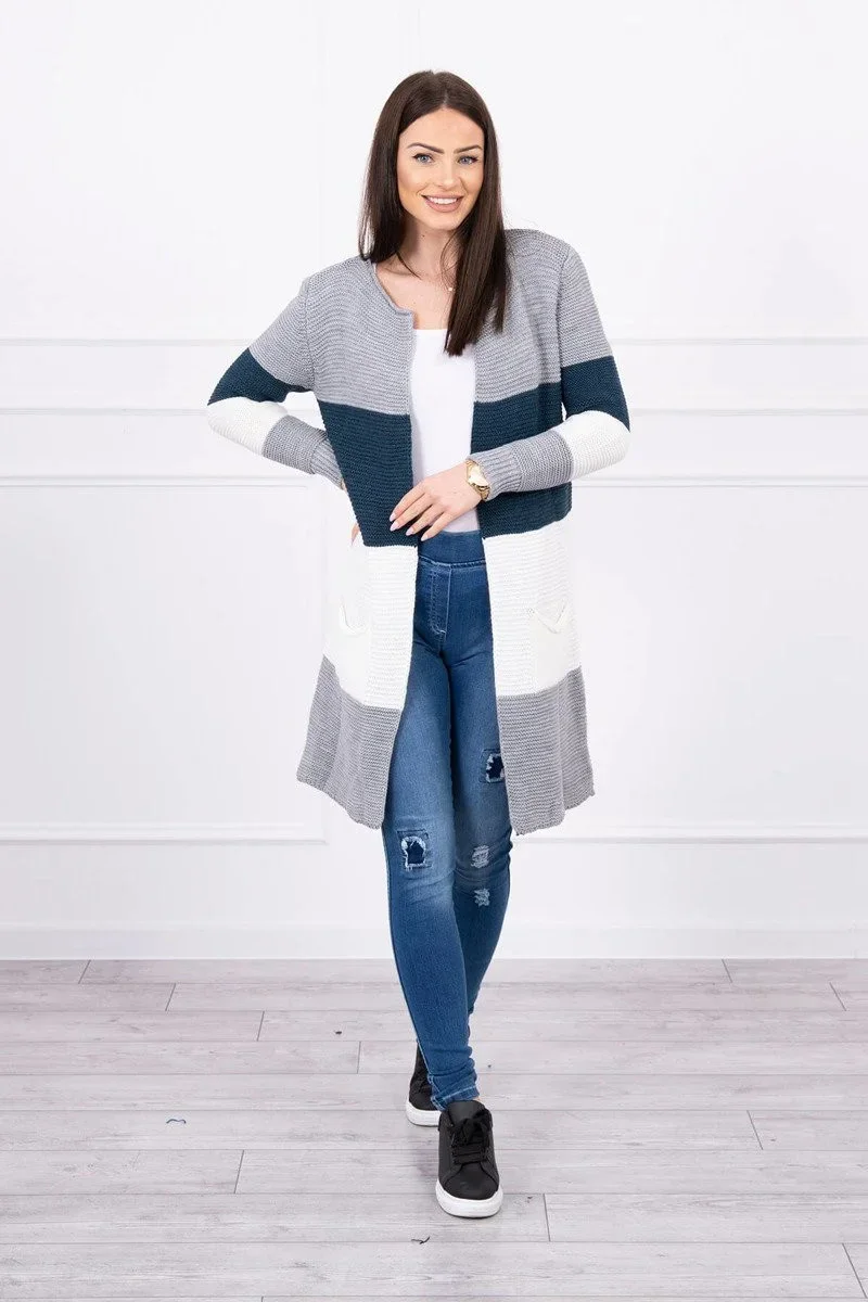 Představujeme vám dlouhý svetr se širokými pruhy. Svetr s dlouhým rukávem a rozepínáním. Na přední straně má dvě praktické kapsy. Velmi módní kombinace barev. Ideální pro jakýkoli styl. Svetr je vyroben z vysoce kvalitního materiálu. Velikost je univerzální a vyhovuje dámám ve velikostech M, L, XL.