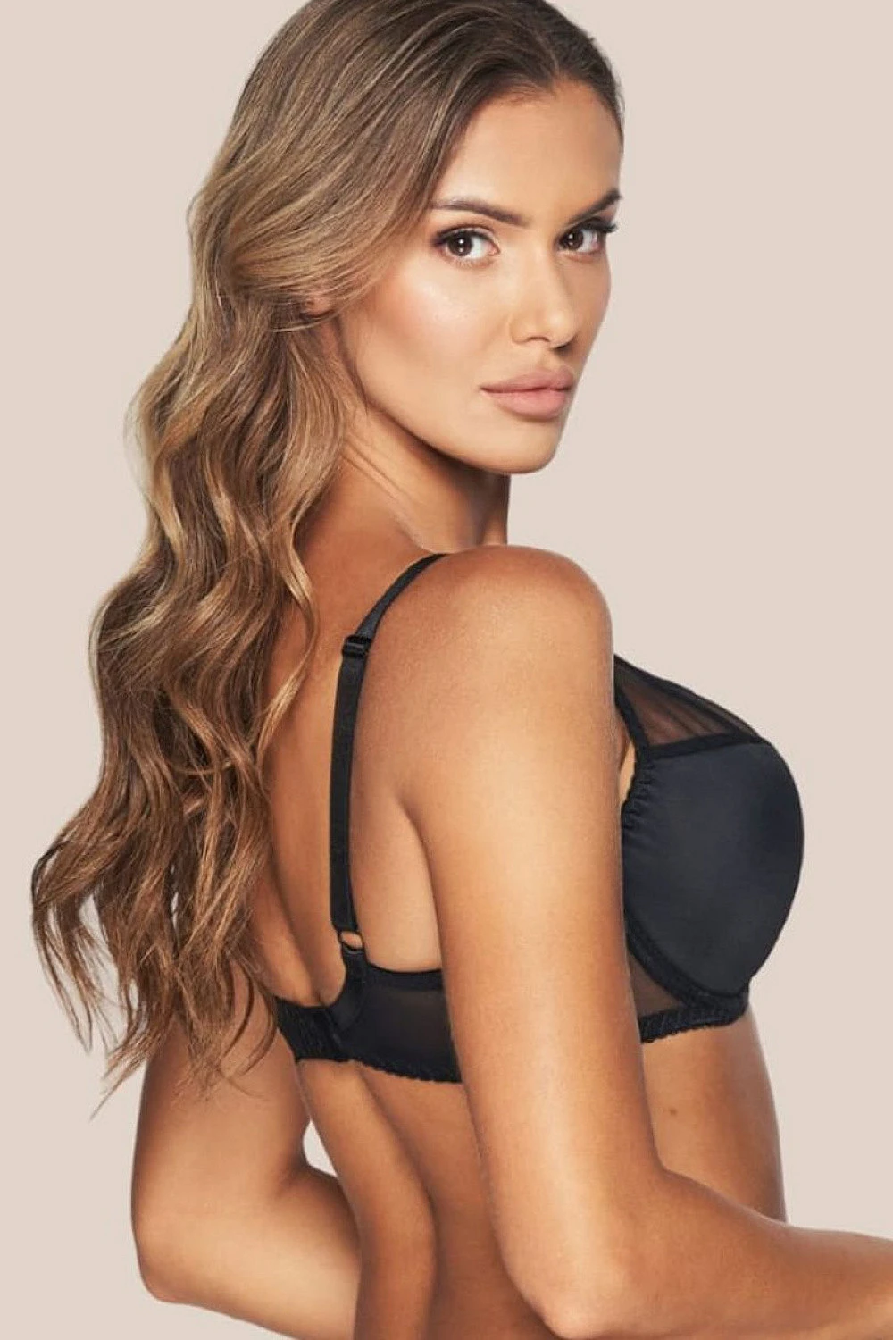 Podprsenka s polotvrdými košíčky Alice BC-930 je harmonické spojení elastické krajky a stabilního síťového materiálu, které zajišťuje estetický vzhled a vysoký komfort nošení. Vnitřní vrstva z měkké pěny zajišťuje, že model je příjemný na nošení, a bavlněná podšívka zvyšuje pohodlí. Ve větších velikostech jsou vloženy zpevňující pruhy markýzy, které udržují správný tvar košíčků a zvyšují trvanlivost podprsenky. Promyšlená konstrukce efektivně zvedá a modeluje prsa, poskytujíc jim stabilní oporu. Model je k dispozici ve širokém rozsahu velikostí od A do K, což umožňuje snadné přizpůsobení různým postavám. Boční části z lehké sítě dodávají celku jemnost, a nastavitelné, dekorativní ramínka zdůrazňují elegantní charakter modelu. Celkový vzhled je doplněn jednolitými černými doplňky, jako jsou kroužky, háčky a regulátory, které podprsenku dotvářejí působivým a propracovaným vzhledem.