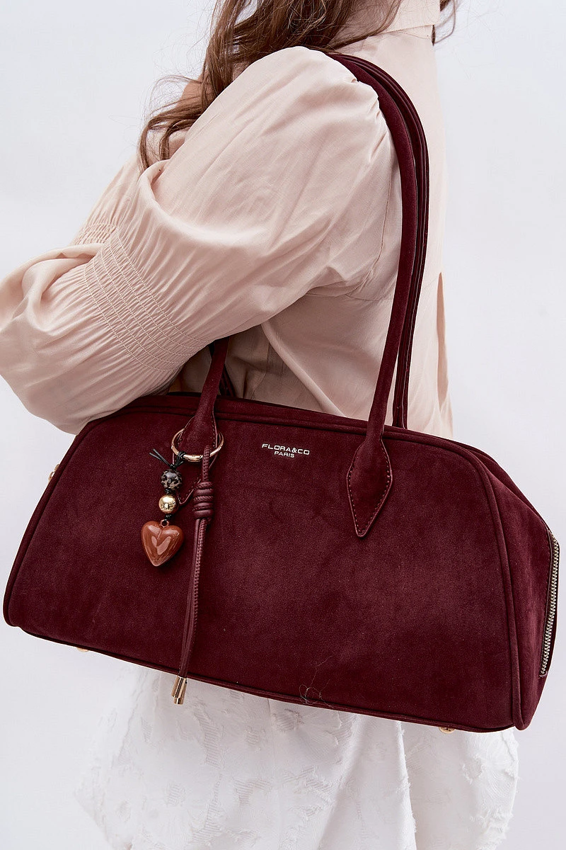 semišová kabelka s přívěskem Bordó model 22111502 - Flora&Co