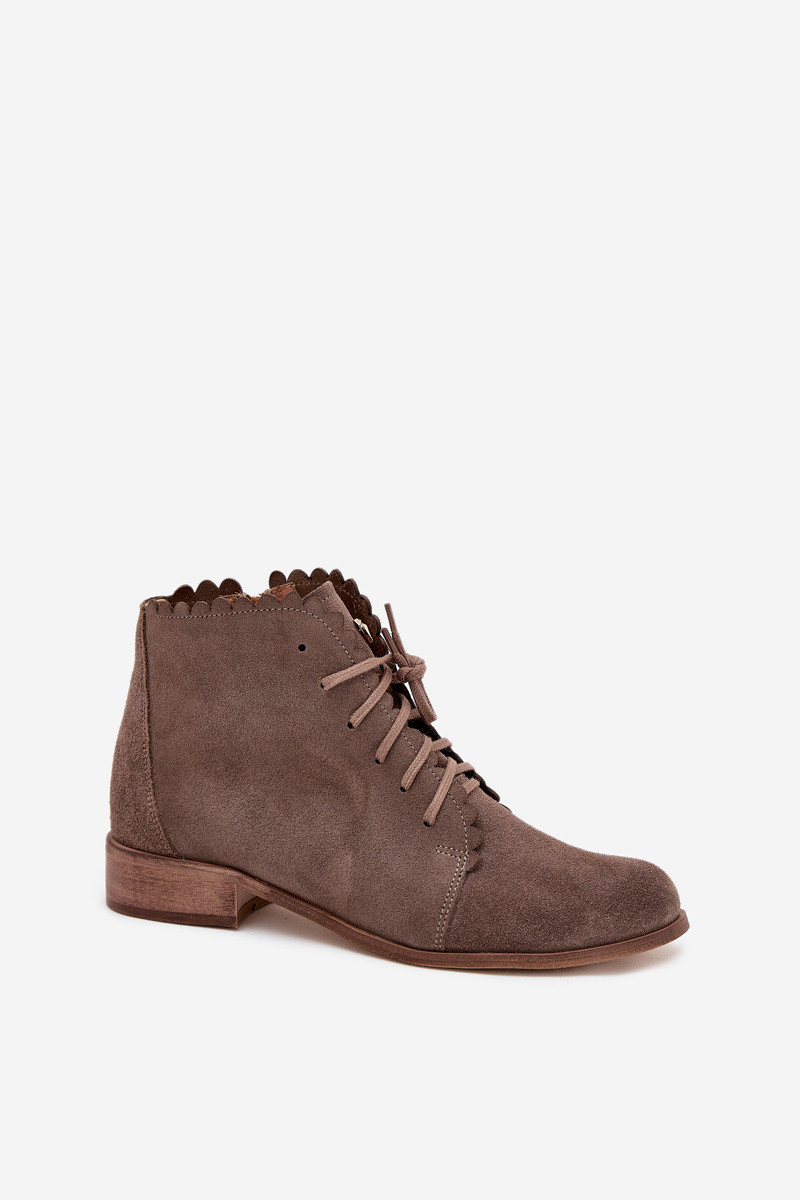 Semišové Boty Na Plochém Podpatku Tmavě Béžové Zazoo