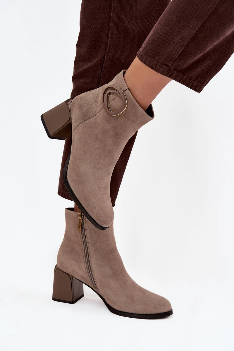 Semišové boty na podpatku s vyhříváním s ozdobným detailem Artiker 57C0014 Béžové