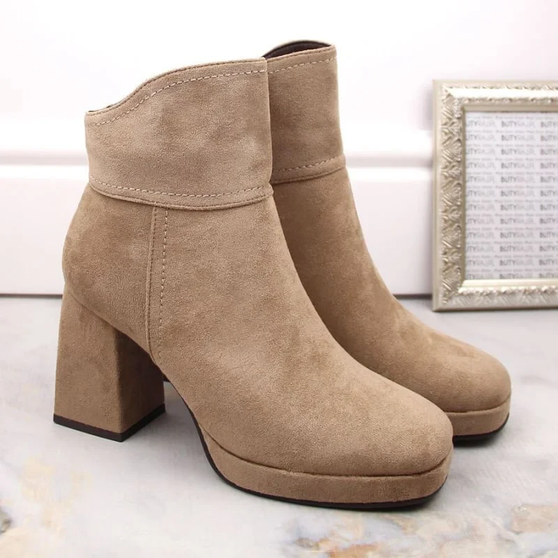 Semišové boty na sloupku a zateplené platformě M.Daszynski W SAN24B béžová